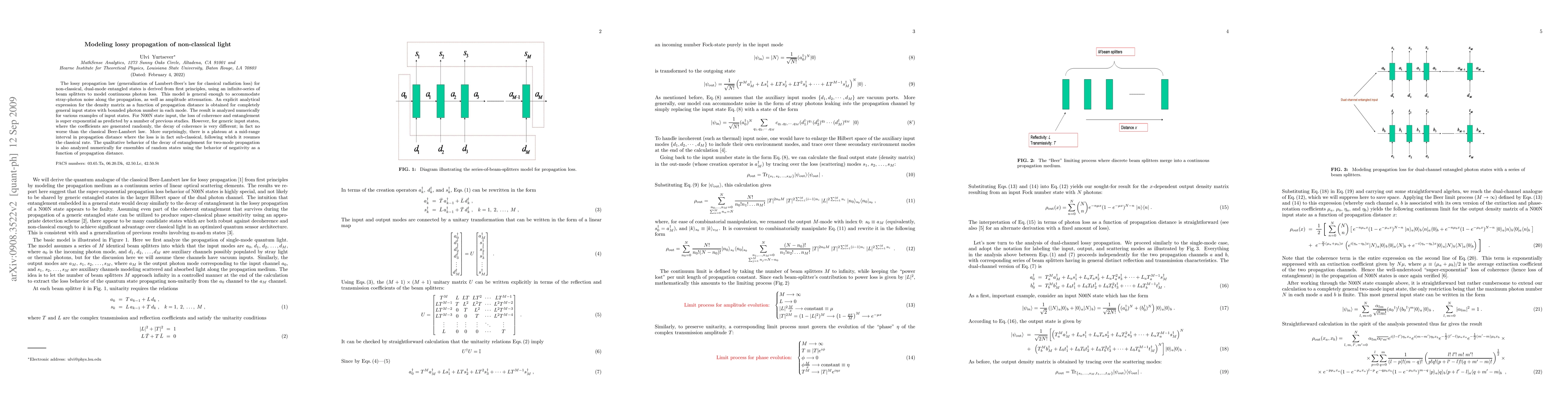 This research derives a model for lossy propagation of non-classical light using infinite-series beam splitters, applicable to entangled states with photon loss and amplitude attenuation. The model reveals that while N00N state inputs experience super-exponential coherence and entanglement loss, generic random input states show decay no worse than classical Beer-Lambert law, with a sub-classical plateau in mid-range propagation distances. Negativity analysis indicates distinct entanglement decay patterns for various input states.