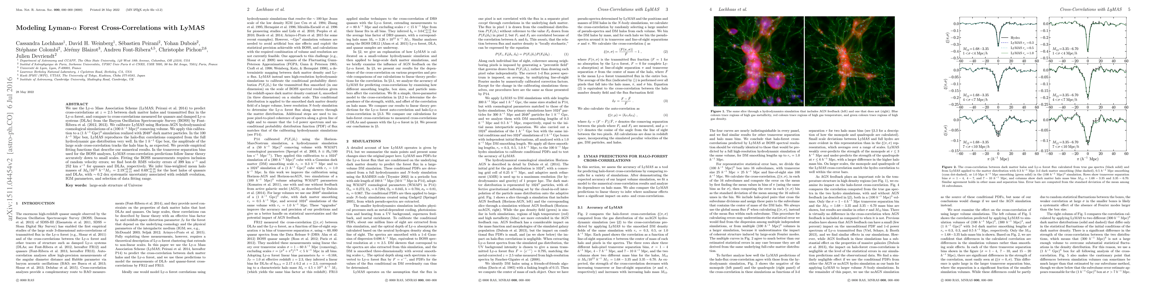 We use the Ly-$\alpha$ Mass Association Scheme (LyMAS; Peirani et al. 2014) to predict cross-correlations at $z=2.5$ between dark matter halos and transmitted flux in the Ly-$\alpha$ forest, and compare to cross-correlations measured for quasars and damped Ly-$\alpha$ systems (DLAs) from the Baryon Oscillation Spectroscopic Survey (BOSS) by Font-Ribera et al. (2012, 2013). We calibrate LyMAS using Horizon-AGN hydrodynamical cosmological simulations of a $(100\ h^{-1}\ \mathrm{Mpc})^3$ comoving volume. We apply this calibration to a $(1\ h^{-1}\ \mathrm{Gpc})^3$ simulation realized with $2048^3$ dark matter particles. In the 100 $h^{-1}$ Mpc box, LyMAS reproduces the halo-flux correlations computed from the full hydrodynamic gas distribution very well. In the 1 $h^{-1}$ Gpc box, the amplitude of the large scale cross-correlation tracks the halo bias $b_h$ as expected. We provide empirical fitting functions that describe our numerical results. In the transverse separation bins used for the BOSS analyses, LyMAS cross-correlation predictions follow linear theory accurately down to small scales. Fitting the BOSS measurements requires inclusion of random velocity errors; we find best-fit RMS velocity errors of 399 km s$^{-1}$ and 252 km s$^{-1}$ for quasars and DLAs, respectively. We infer bias-weighted mean halo masses of $M_h/10^{12}\ h^{-1}M_\odot=2.19^{+0.16}_{-0.15}$ and $0.69^{+0.16}_{-0.14}$ for the host halos of quasars and DLAs, with $\sim 0.2$ dex systematic uncertainty associated with redshift evolution, IGM parameters, and selection of data fitting range.