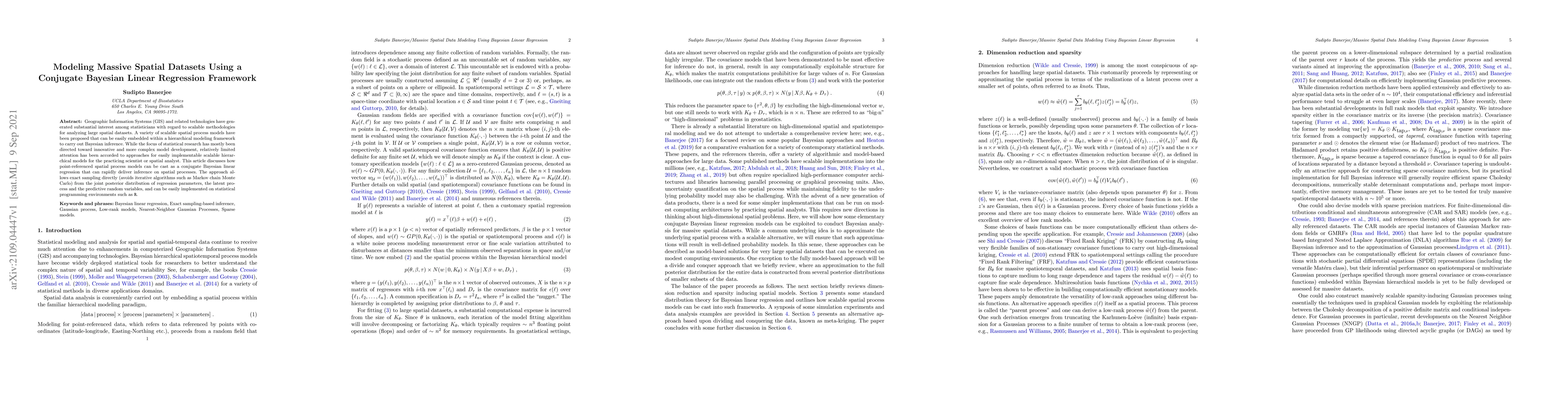 This paper proposes a conjugate Bayesian linear regression framework for modeling massive spatial datasets, offering a scalable and easily implementable approach for spatial analysts. It enables exact sampling from the joint posterior distribution, avoiding iterative algorithms like MCMC, and is suitable for use in statistical environments like R.