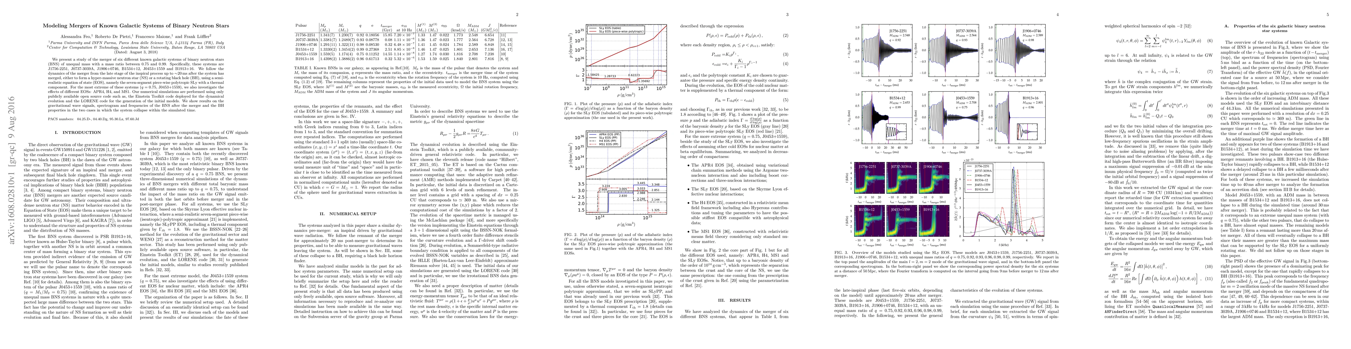 Researchers simulated the merger of six binary neutron star systems, predicting the formation of either a hyper-massive neutron star or rotating black hole, with varying gravitational wave signals and properties depending on the system's mass ratio.