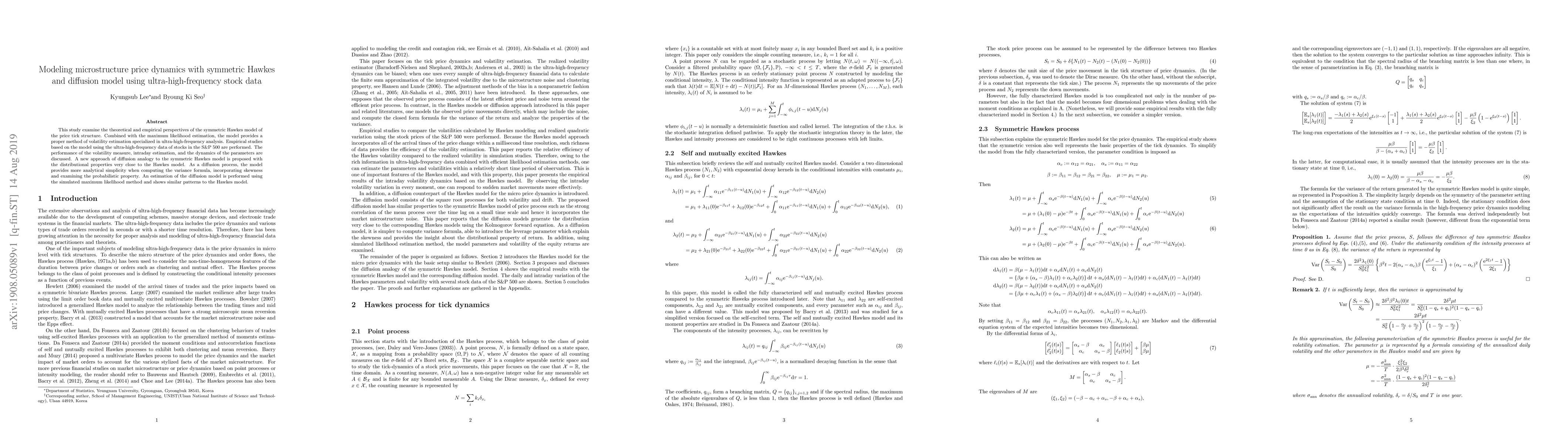 This study examine the theoretical and empirical perspectives of the symmetric Hawkes model of the price tick structure. Combined with the maximum likelihood estimation, the model provides a proper method of volatility estimation specialized in ultra-high-frequency analysis. Empirical studies based on the model using the ultra-high-frequency data of stocks in the S\&P 500 are performed. The performance of the volatility measure, intraday estimation, and the dynamics of the parameters are discussed. A new approach of diffusion analogy to the symmetric Hawkes model is proposed with the distributional properties very close to the Hawkes model. As a diffusion process, the model provides more analytical simplicity when computing the variance formula, incorporating skewness and examining the probabilistic property. An estimation of the diffusion model is performed using the simulated maximum likelihood method and shows similar patterns to the Hawkes model.