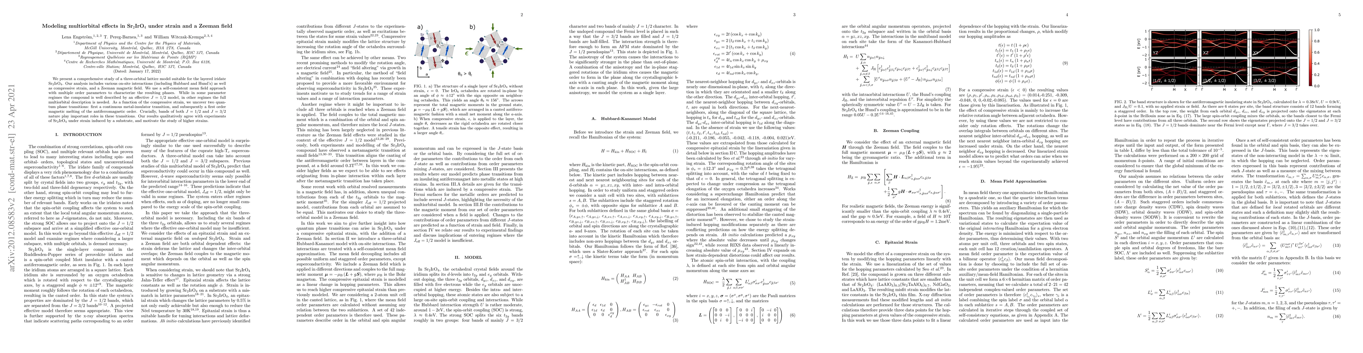 This paper models the multiorbital effects in Sr2IrO4 under strain and a Zeeman field, revealing two quantum phase transitions: a metal-insulator transition and a first-order magnetic melting of antiferromagnetic order, with both J=1/2 and J=3/2 bands playing crucial roles. The findings align with experimental observations of strain-induced changes in Sr2IrO4.