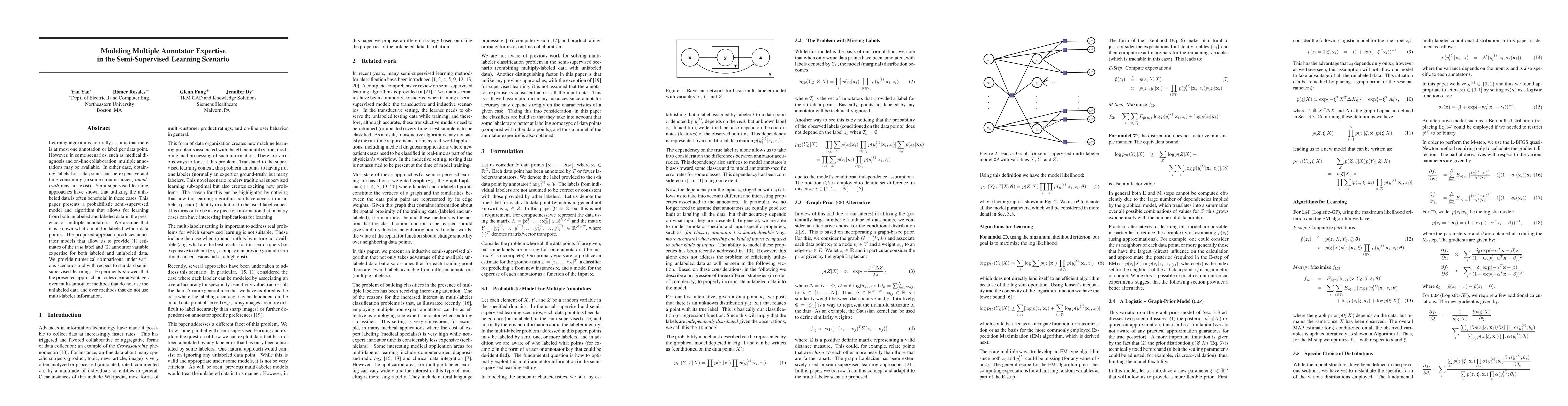 Learning algorithms normally assume that there is at most one annotation or label per data point. However, in some scenarios, such as medical diagnosis and on-line collaboration,multiple annotations may be available. In either case, obtaining labels for data points can be expensive and time-consuming (in some circumstances ground-truth may not exist). Semi-supervised learning approaches have shown that utilizing the unlabeled data is often beneficial in these cases. This paper presents a probabilistic semi-supervised model and algorithm that allows for learning from both unlabeled and labeled data in the presence of multiple annotators. We assume that it is known what annotator labeled which data points. The proposed approach produces annotator models that allow us to provide (1) estimates of the true label and (2) annotator variable expertise for both labeled and unlabeled data. We provide numerical comparisons under various scenarios and with respect to standard semi-supervised learning. Experiments showed that the presented approach provides clear advantages over multi-annotator methods that do not use the unlabeled data and over methods that do not use multi-labeler information.
