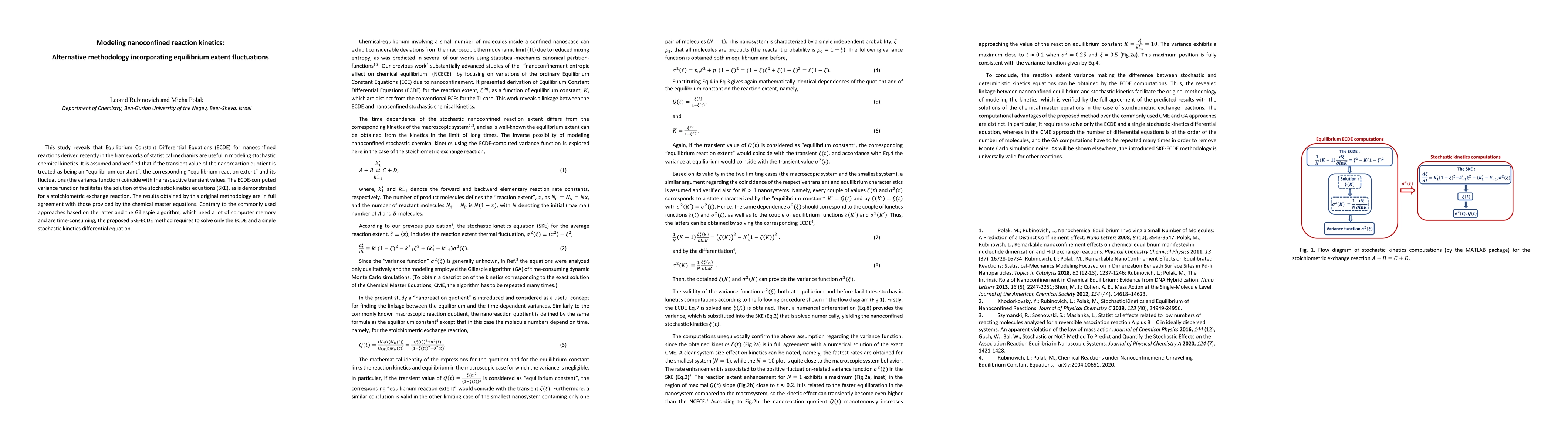 This paper proposes a new methodology for modeling nanoconfined reaction kinetics using Equilibrium Constant Differential Equations (ECDE) that incorporates equilibrium extent fluctuations, demonstrating its application to a stoichiometric exchange reaction. The method requires solving only the ECDE and a single stochastic kinetics differential equation, offering a more efficient alternative to the chemical master equations and Gillespie algorithm.
