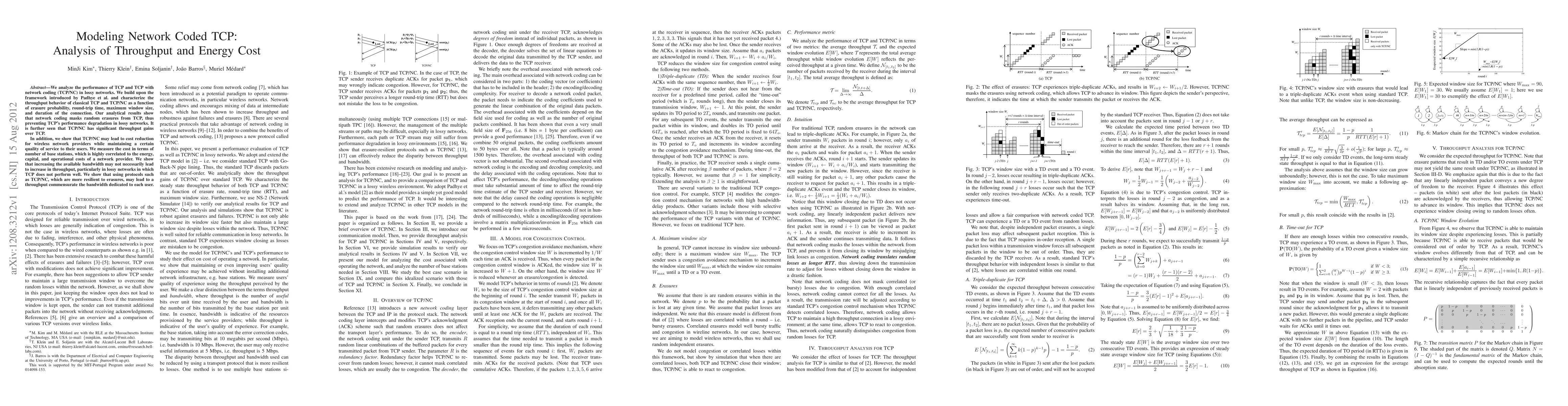 This paper analyzes TCP and TCP with network coding (TCP/NC) performance in lossy networks, demonstrating that TCP/NC maintains throughput despite random erasures and provides significant throughput gains over TCP. It also shows that TCP/NC can reduce network costs by optimizing resource usage, particularly in wireless networks.