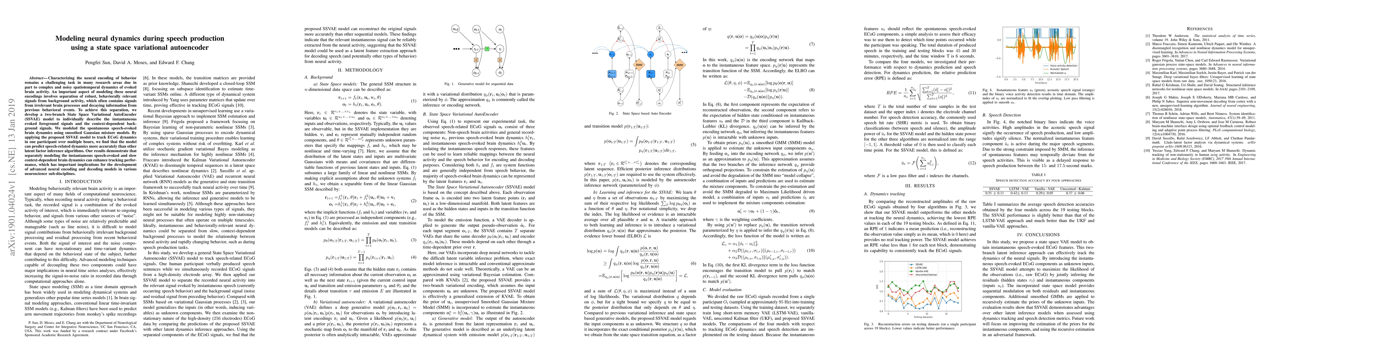 Characterizing the neural encoding of behavior remains a challenging task in many research areas due in part to complex and noisy spatiotemporal dynamics of evoked brain activity. An important aspect of modeling these neural encodings involves separation of robust, behaviorally relevant signals from background activity, which often contains signals from irrelevant brain processes and decaying information from previous behavioral events. To achieve this separation, we develop a two-branch State Space Variational AutoEncoder (SSVAE) model to individually describe the instantaneous evoked foreground signals and the context-dependent background signals. We modeled the spontaneous speech-evoked brain dynamics using smoothed Gaussian mixture models. By applying the proposed SSVAE model to track ECoG dynamics in one participant over multiple hours, we find that the model can predict speech-related dynamics more accurately than other latent factor inference algorithms. Our results demonstrate that separately modeling the instantaneous speech-evoked and slow context-dependent brain dynamics can enhance tracking performance, which has important implications for the development of advanced neural encoding and decoding models in various neuroscience sub-disciplines.