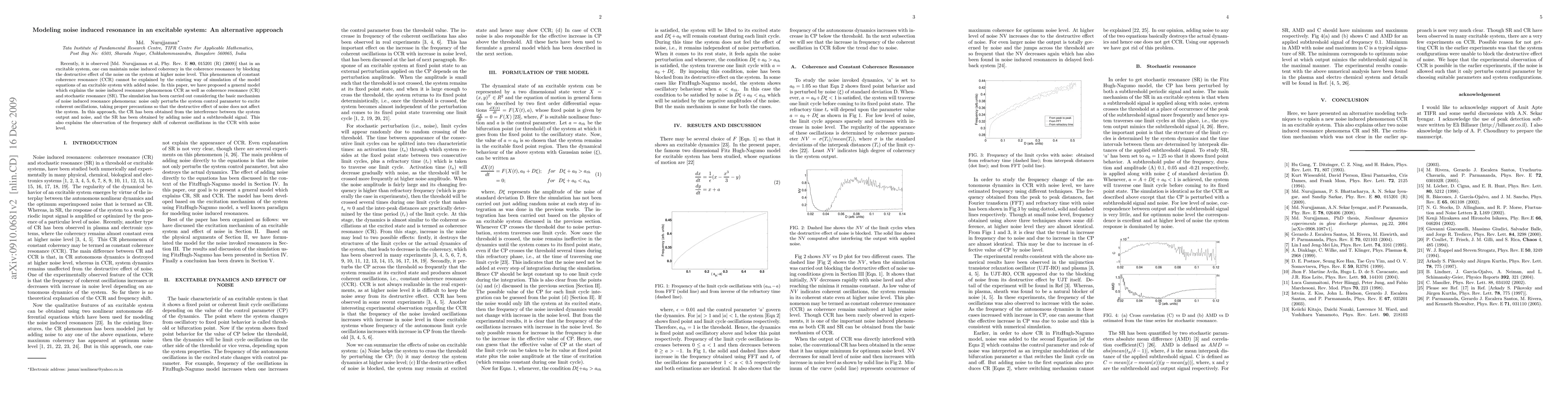 This paper proposes a novel model to explain noise induced resonance phenomena, including coherence resonance and stochastic resonance, by perturbing the system control parameter without destructive noise effects. It demonstrates constant coherence resonance and frequency shifts in coherent oscillations with varying noise levels.