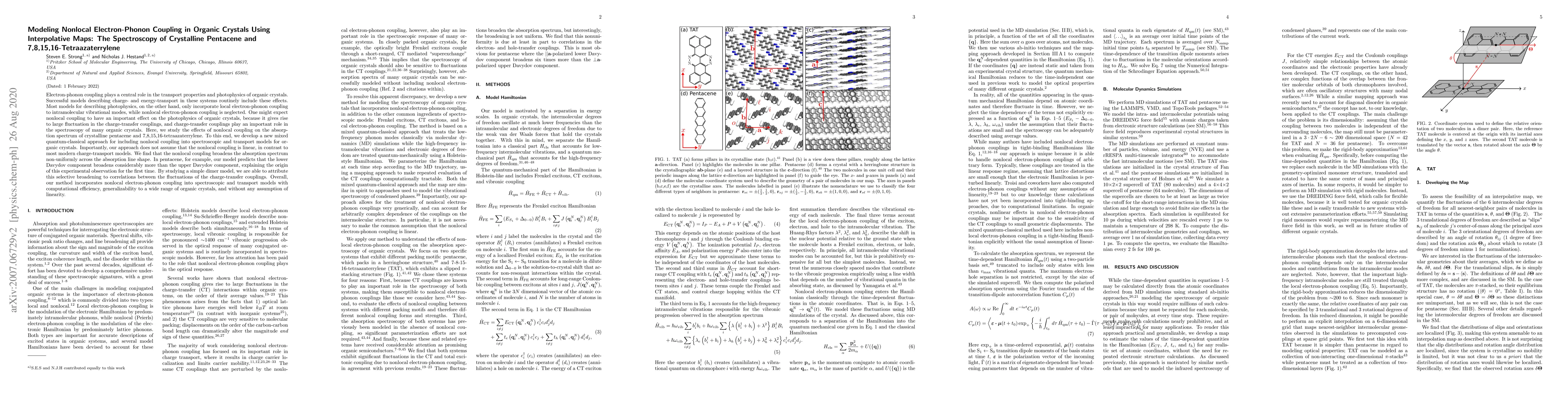 Electron-phonon coupling plays a central role in the transport properties and photophysics of organic crystals. Successful models describing charge- and energy-transport in these systems routinely include these effects. Most models for describing photophysics, on the other hand, only incorporate local electron-phonon coupling to intramolecular vibrational modes, while nonlocal electron-phonon coupling is neglected. One might expect nonlocal coupling to have an important effect on the photophysics of organic crystals, because it gives rise to large fluctuation in the charge-transfer couplings, and charge-transfer couplings play an important role in the spectroscopy of many organic crystals. Here, we study the effects of nonlocal coupling on the absorption spectrum of crystalline pentacene and 7,8,15,16-tetraazaterrylene. To this end, we develop a new mixed quantum-classical approach for including nonlocal coupling into spectroscopic and transport models for organic crystals. Importantly, our approach does not assume that the nonlocal coupling is linear, in contrast to most modern charge-transport models. We find that the nonlocal coupling broadens the absorption spectrum non-uniformly across the absorption line shape. In pentacene, for example, our model predicts that the lower Davydov component broadens considerably more than the upper Davydov component, explaining the origin of this experimental observation for the first time. By studying a simple dimer model, we are able to attribute this selective broadening to correlations between the fluctuations of the charge-transfer couplings. Overall, our method incorporates nonlocal electron-phonon coupling into spectroscopic and transport models with computational efficiency, generalizability to a wide range of organic crystals, and without any assumption of linearity.