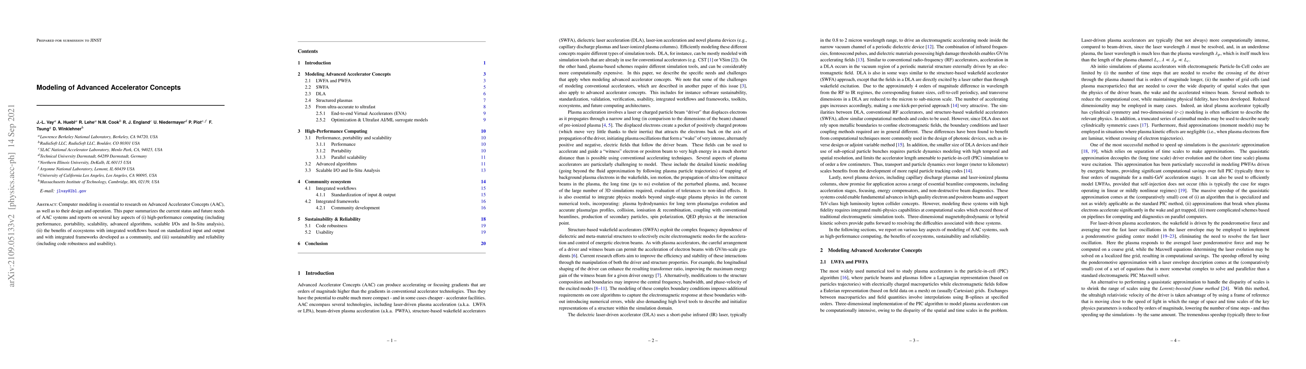 Computer modeling is essential to research on Advanced Accelerator Concepts (AAC), as well as to their design and operation. This paper summarizes the current status and future needs of AAC systems and reports on several key aspects of (i) high-performance computing (including performance, portability, scalability, advanced algorithms, scalable I/Os and In-Situ analysis), (ii) the benefits of ecosystems with integrated workflows based on standardized input and output and with integrated frameworks developed as a community, and (iii) sustainability and reliability (including code robustness and usability).