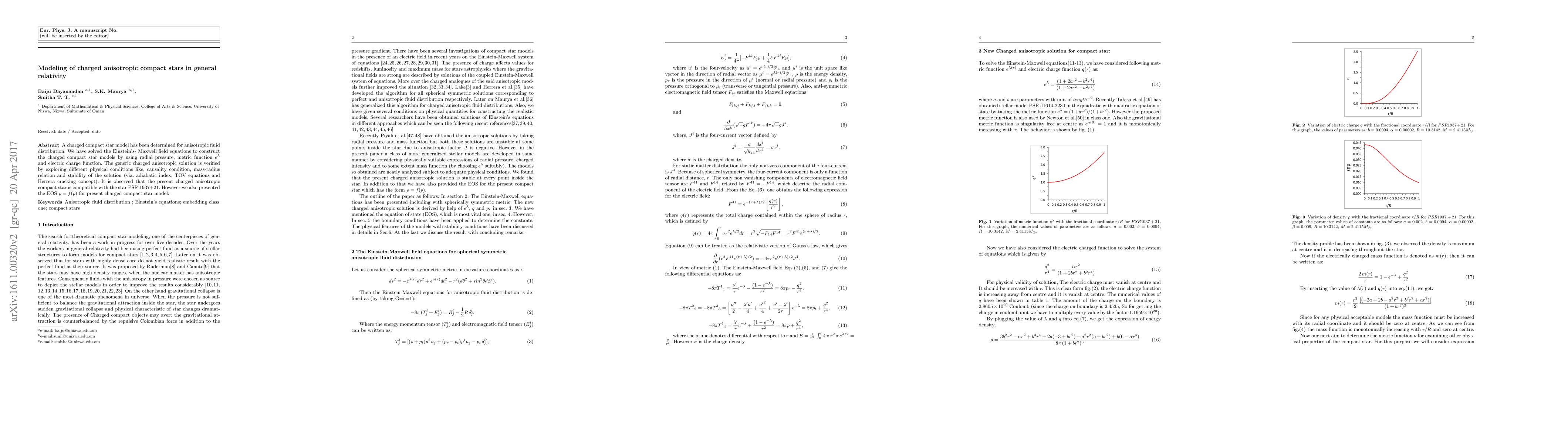 Researchers developed a model for charged compact stars with anisotropic fluid distribution, verifying its compatibility with real star PSR 1937+21 and providing insights into their properties.