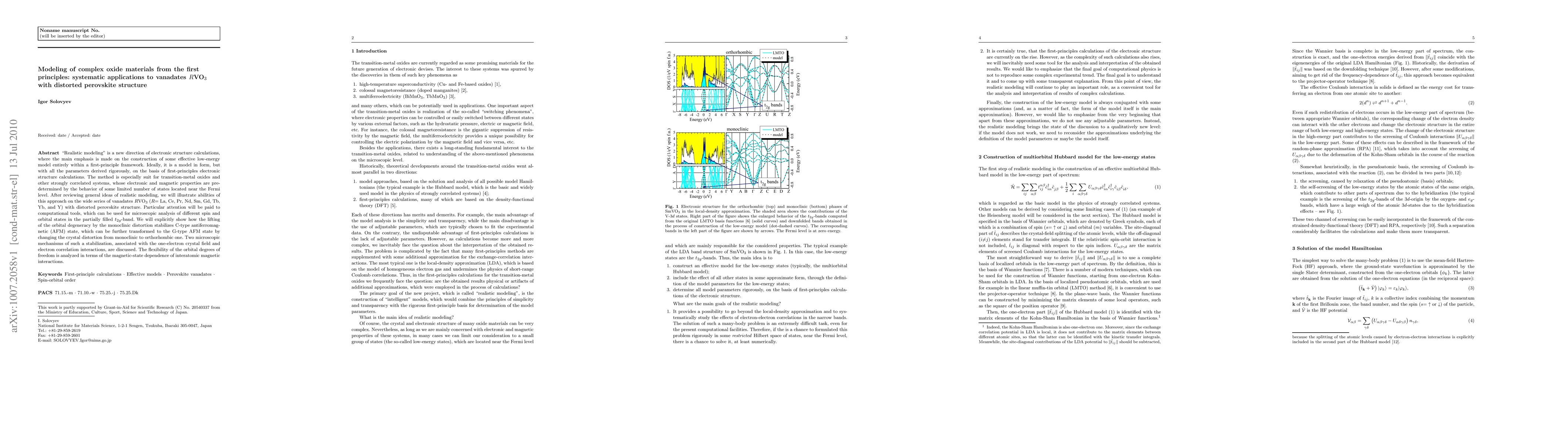 "Realistic modeling" is a new direction of electronic structure calculations, where the main emphasis is made on the construction of some effective low-energy model entirely within a first-principle framework. Ideally, it is a model in form, but with all the parameters derived rigorously, on the basis of first-principles electronic structure calculations. The method is especially suit for transition-metal oxides and other strongly correlated systems, whose electronic and magnetic properties are predetermined by the behavior of some limited number of states located near the Fermi level. After reviewing general ideas of realistic modeling, we will illustrate abilities of this approach on the wide series of vanadates RVO3 (R= La, Ce, Pr, Nd, Sm, Gd, Tb, Yb, and Y) with distorted perovskite structure. Particular attention will be paid to computational tools, which can be used for microscopic analysis of different spin and orbital states in the partially filled t2g-band. We will explicitly show how the lifting of the orbital degeneracy by the monoclinic distortion stabilizes C-type antiferromagnetic (AFM) state, which can be further transformed to the G-type AFM state by changing the crystal distortion from monoclinic to orthorhombic one. Two microscopic mechanisms of such a stabilization, associated with the one-electron crystal field and electron correlation interactions, are discussed. The flexibility of the orbital degrees of freedom is analyzed in terms of the magnetic-state dependence of interatomic magnetic interactions.
