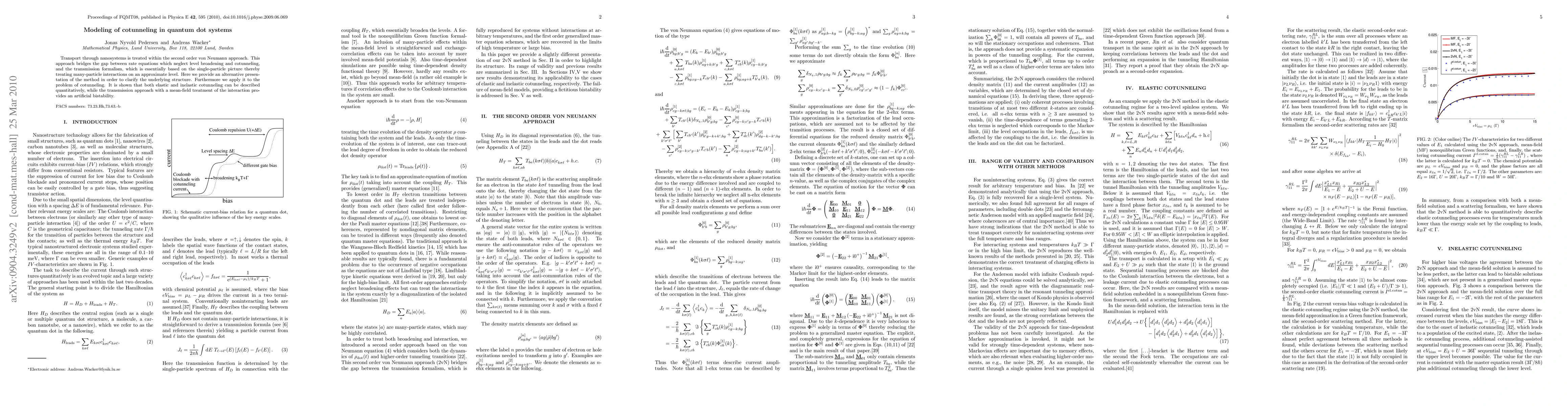 Transport through nanosystems is treated within the second order von Neumann approach. This approach bridges the gap between rate equations which neglect level broadening and cotunneling, and the transmission formalism, which is essentially based on the single-particle picture thereby treating many-particle interactions on an approximate level. Here we provide an alternative presentation of the method in order to clarify the underlying structure. Furthermore we apply it to the problem of cotunneling. It is shown that both elastic and inelastic cotunneling can be described quantitatively, while the transmission approach with a mean-field treatment of the interaction provides an artificial bistability.