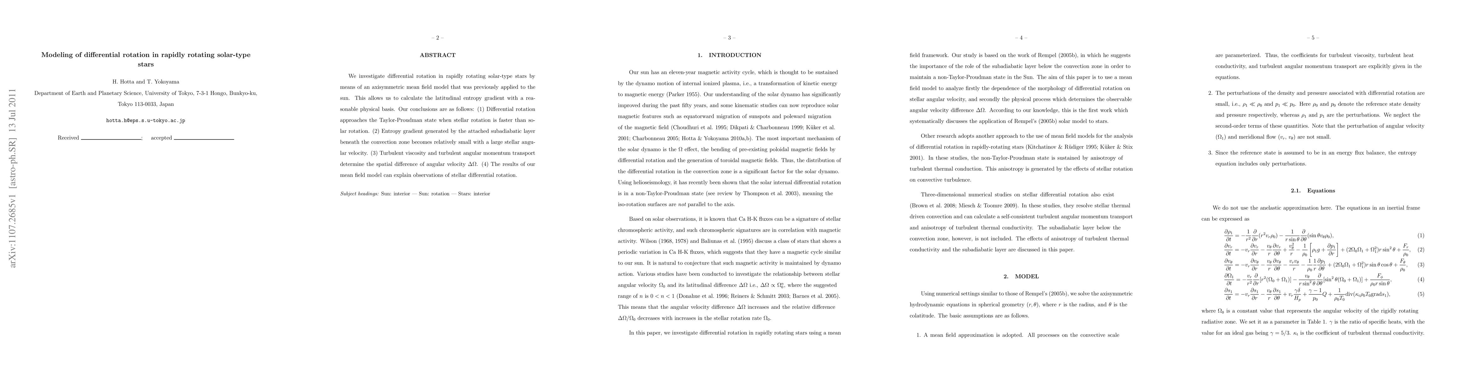 This study models differential rotation in rapidly rotating solar-type stars using an axisymmetric mean field model, finding that differential rotation approaches the Taylor-Proudman state at high rotation rates and that turbulent viscosity and transport dominate angular velocity differences.
