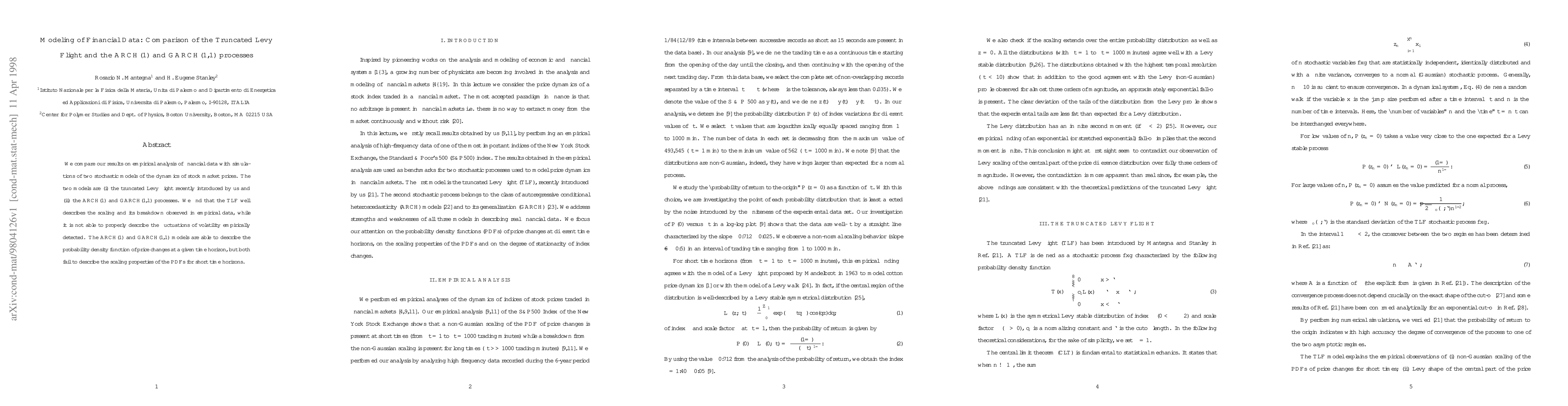 We compare our results on empirical analysis of financial data with simulations of two stochastic models of the dynamics of stock market prices. The two models are (i) the truncated L\'evy flight recently introduced by us and (ii) the ARCH(1) and GARCH(1,1) processes. We find that the TLF well describes the scaling and its breakdown observed in empirical data, while it is not able to properly describe the fluctuations of volatility empirically detected. The ARCH(1) and GARCH(1,1) models are able to describe the probability density function of price changes at a given time horizon, but both fail to describe the scaling properties of the PDFs for short time horizons.