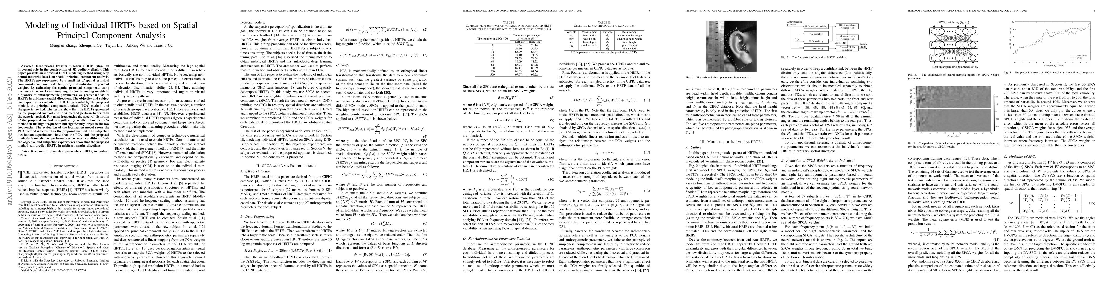 A new method for modeling individual head-related transfer functions (HRTFs) using deep neural networks and spatial principal component analysis is proposed, achieving better results than traditional methods in objective and subjective experiments.
