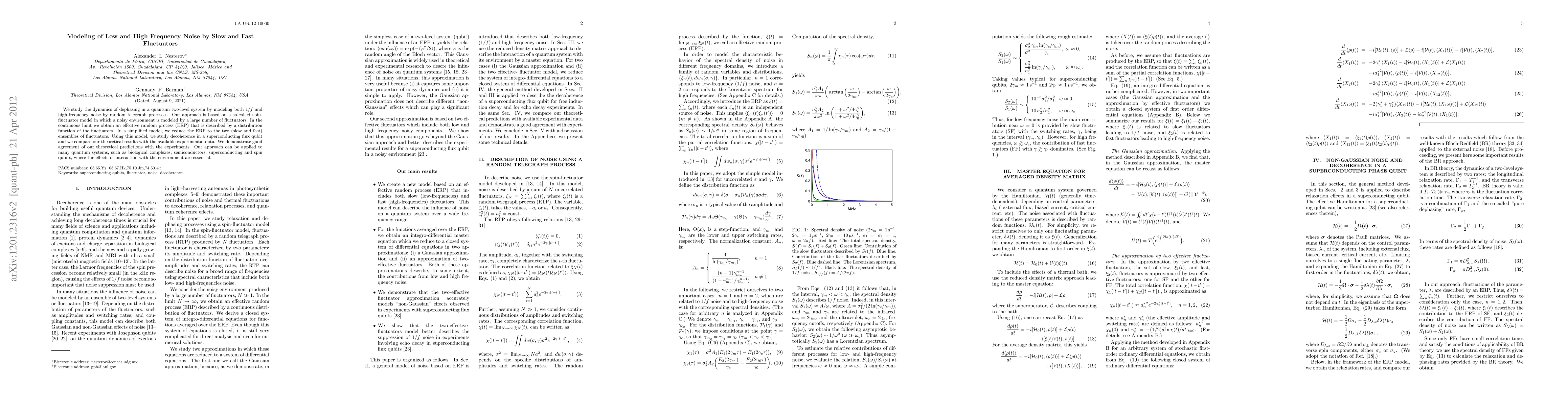 Researchers model low and high-frequency noise in quantum systems using a spin-fluctuator model, achieving good agreement with experimental data and demonstrating the approach's applicability to various systems.