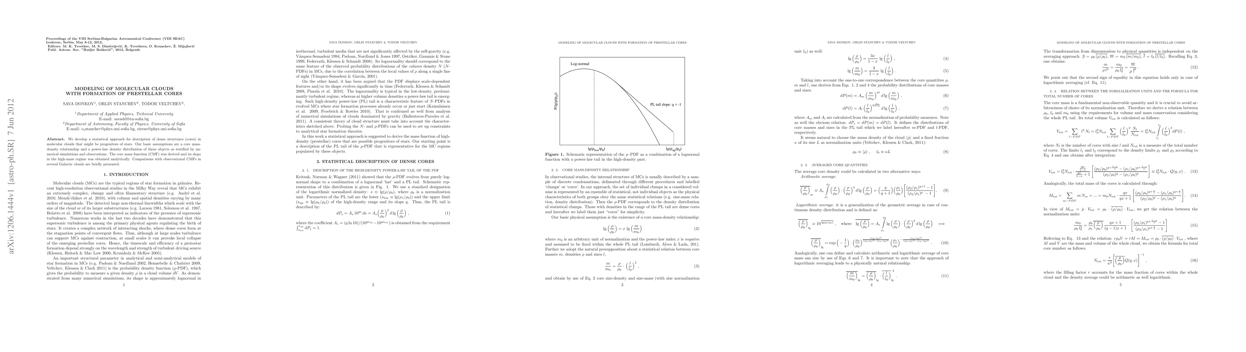 This paper develops a statistical model to describe dense structures in molecular clouds, focusing on prestellar cores that may evolve into stars. It derives the core mass function (CMF) and compares its high-mass regime slope with observational data from several Galactic clouds.