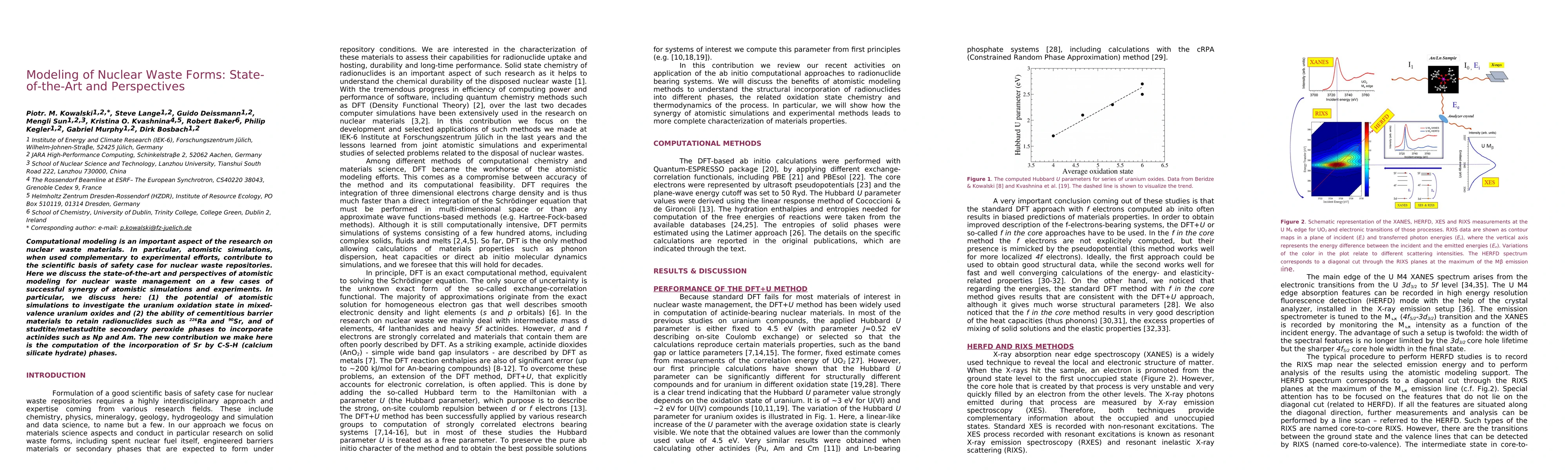 This paper reviews the current state-of-the-art in computational modeling for nuclear waste management, emphasizing the synergy between atomistic simulations and experimental research. It highlights successful applications in understanding uranium oxidation states and the retention of radionuclides by cementitious barriers, and introduces new computational insights into the incorporation of Sr by calcium silicate hydrate phases.