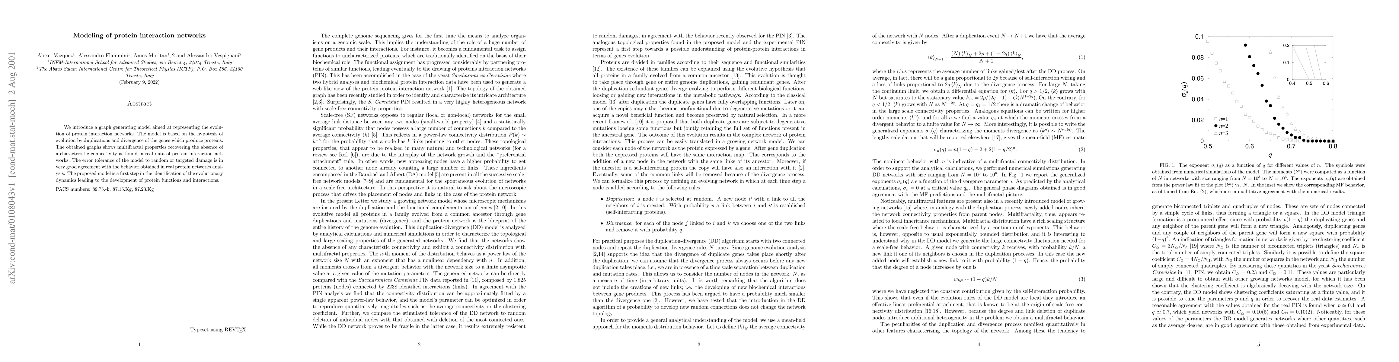 This model simulates protein interaction networks based on evolutionary duplication and divergence of genes, showing agreement with real data on connectivity and damage tolerance. It's a step towards understanding the evolution of protein functions and interactions.