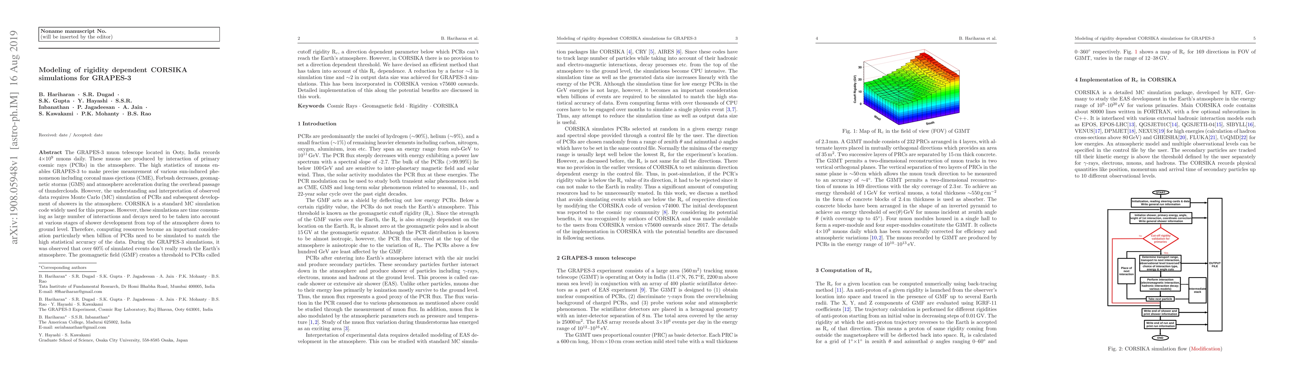 This paper presents a method for enhancing CORSIKA simulations to account for rigidity-dependent cutoff rigidities, significantly improving the efficiency of simulations for the GRAPES-3 muon telescope. The new approach reduces simulation time by a factor of ~3 and output data size by ~2, facilitating more precise measurements of cosmic ray phenomena.
