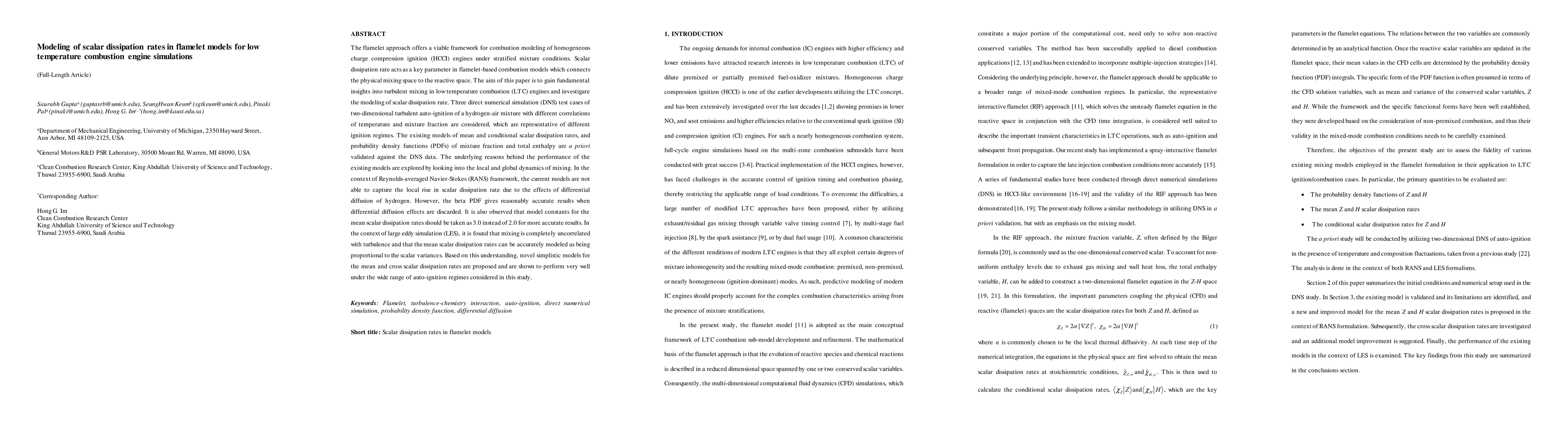 This paper investigates the modeling of scalar dissipation rates in flamelet models for low temperature combustion engine simulations, focusing on turbulent mixing in HCCI engines. It validates existing models against direct numerical simulations of turbulent hydrogen-air auto-ignition, aiming to provide fundamental insights into combustion processes.