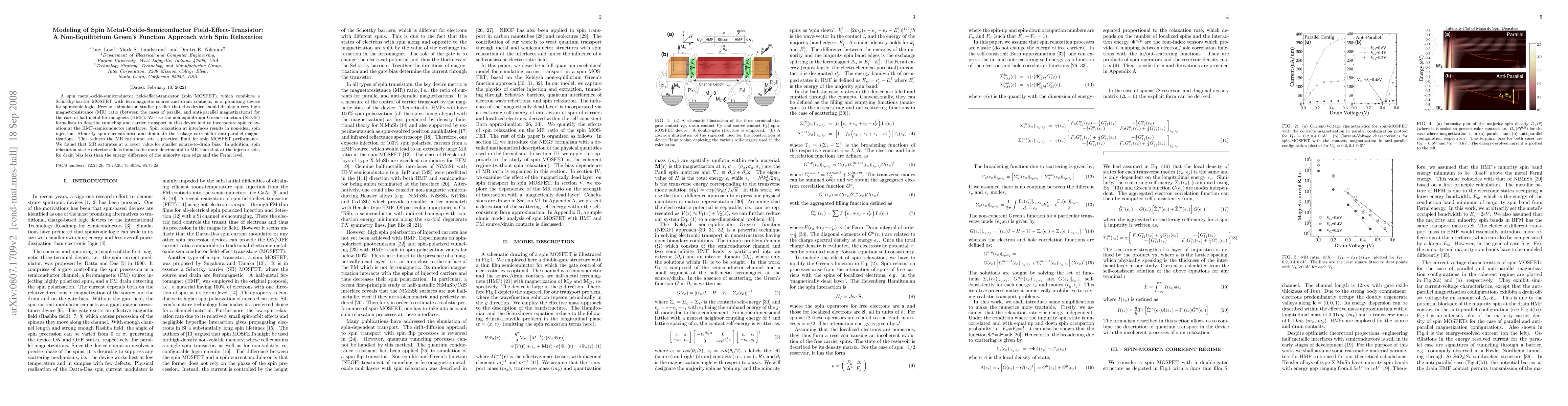 This paper models a spin metal-oxide-semiconductor field-effect transistor (spin MOSFET) using the non-equilibrium Green's function approach, revealing that spin relaxation at ferromagnet-semiconductor interfaces limits its magnetoresistance ratio and performance. Spin relaxation is more detrimental at the detector side, especially for lower drain biases.