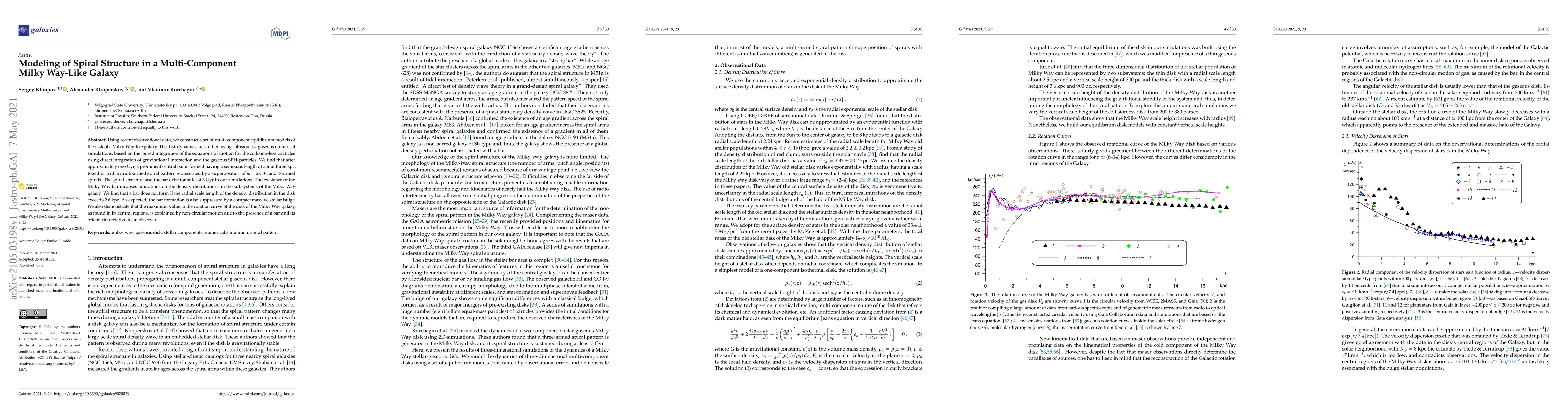 This paper models the spiral structure in a Milky Way-like galaxy using multi-component equilibrium models and numerical simulations. The study finds a prominent central bar and multi-armed spirals forming after one Gyr, which persist for at least 3 Gyr, and highlights the bar's influence on the galaxy's rotation curve.
