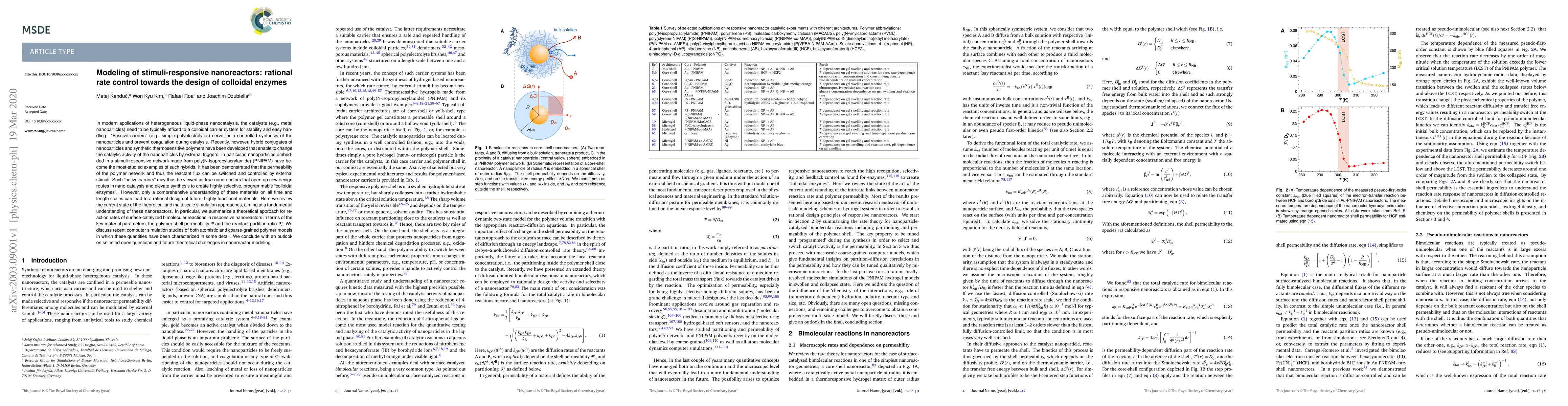 In modern applications of heterogeneous liquid-phase nanocatalysis, the catalysts (e.g., metal nanoparticles) need to be typically affixed to a colloidal carrier system for stability and easy handling. "Passive carriers" (e.g., simple polyelectrolytes) serve for a controlled synthesis of the nanoparticles and prevent coagulation during catalysis. Recently, however, hybrid conjugates of nanoparticles and synthetic thermosensitive polymers have been developed that enable to change the catalytic activity of the nanoparticles by external triggers. In particular, nanoparticles embedded in a stimuli-responsive network made from poly(N-isopropylacrylamide) (PNIPAM) have become the most-studied examples of such hybrids. It has been demonstrated that the permeability of the polymer network and thus the reactant flux can be switched and controlled by external stimuli. Such "active carriers" may thus be viewed as true nanoreactors that open up new design routes in nano-catalysis and elevate synthesis to create highly selective, programmable "colloidal enzymes". However, only a comprehensive understanding of these materials on all time and length scales can lead to a rational design of future, highly functional materials. Here we review the current state of the theoretical and multi-scale simulation approaches, aiming at a fundamental understanding of these nanoreactors. In particular, we summarize a theoretical approach for reaction rates of surface-catalyzed bimolecular reactions in responsive nanoreactors in terms of the key material parameters, the polymer shell permeability P and the reactant partition ratio K. We discuss recent computer simulation studies of both atomistic and coarse-grained polymer models in which these quantities have been characterized in some detail. We conclude with an outlook on selected open questions and future theoretical challenges in nanoreactor modeling.