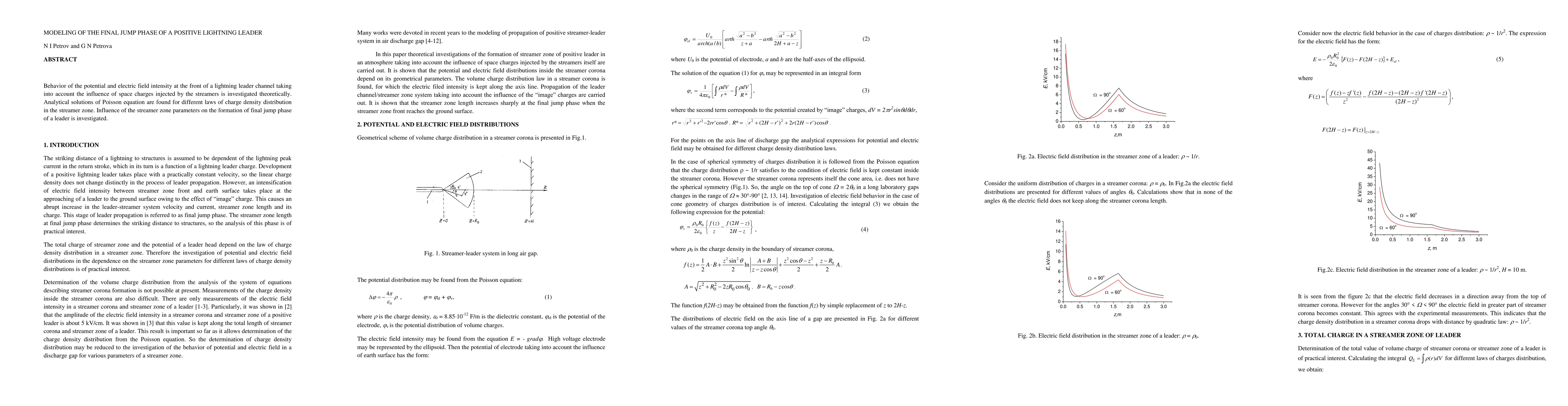 This research theoretically investigates the potential and electric field behavior at a lightning leader's front, considering space charges from streamers. Analytical solutions for Poisson's equation under varying charge density distributions in the streamer zone are derived. The study explores how streamer zone parameters impact the formation of the final jump phase of a leader.