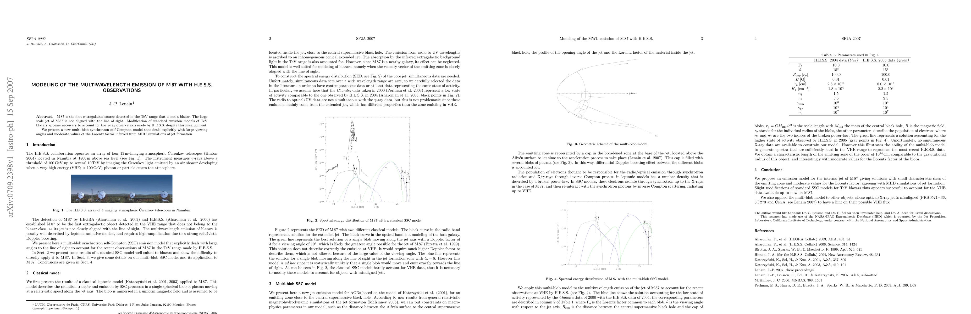 M87 is the first extragalactic source detected in the TeV range that is not a blazar. The large scale jet of M87 is not aligned with the line of sight. Modification of standard emission models of TeV blazars appears necessary to account for the gamma-ray observations made by H.E.S.S. despite this misalignment. We present a new multi-blob synchrotron self-Compton model that deals explicitly with large viewing angles and moderate values of the Lorentz factor inferred from MHD simulations of jet formation.