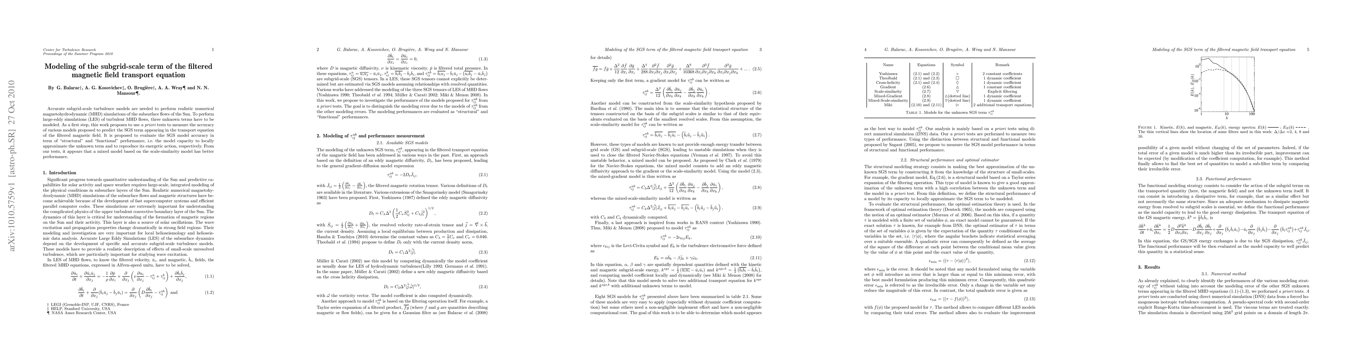 This research proposes a priori tests to evaluate subgrid-scale turbulence models for accurate numerical magnetohydrodynamic simulations of solar subsurface flows. A mixed model based on the scale-similarity model shows better "structural" and "functional" performance in approximating the unknown term and reproducing its energetic effects.