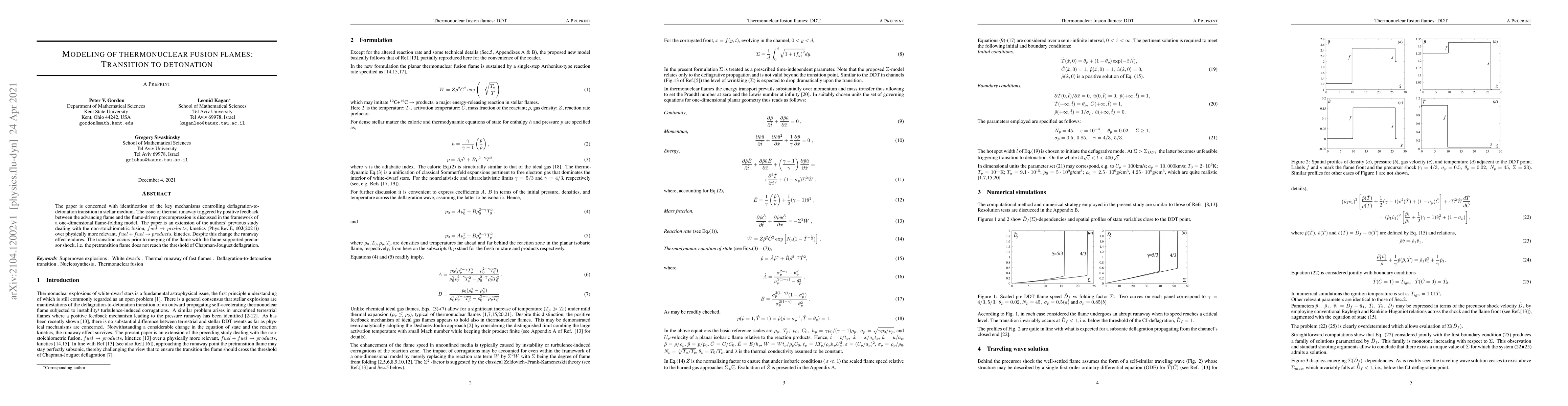 The paper is concerned with identification of the key mechanisms controlling deflagration-to-detonation transition in stellar medium. The issue of thermal runaway triggered by positive feedback between the advancing flame and the flame-driven precompression is discussed in the framework of a one-dimensional flame-folding model. The paper is an extension of the authors' previous study dealing with the non-stoichiometric fusion, $fuel \to products$, kinetics (Phys.Rev.E, 103(2021)) over physically more relevant, $fuel+fuel \to products$, kinetics. Despite this change the runaway effect endures. The transition occurs prior to merging of the flame with the flame-supported precursor shock, i.e. the pretransition flame does not reach the threshold of Chapman-Jouguet deflagration.