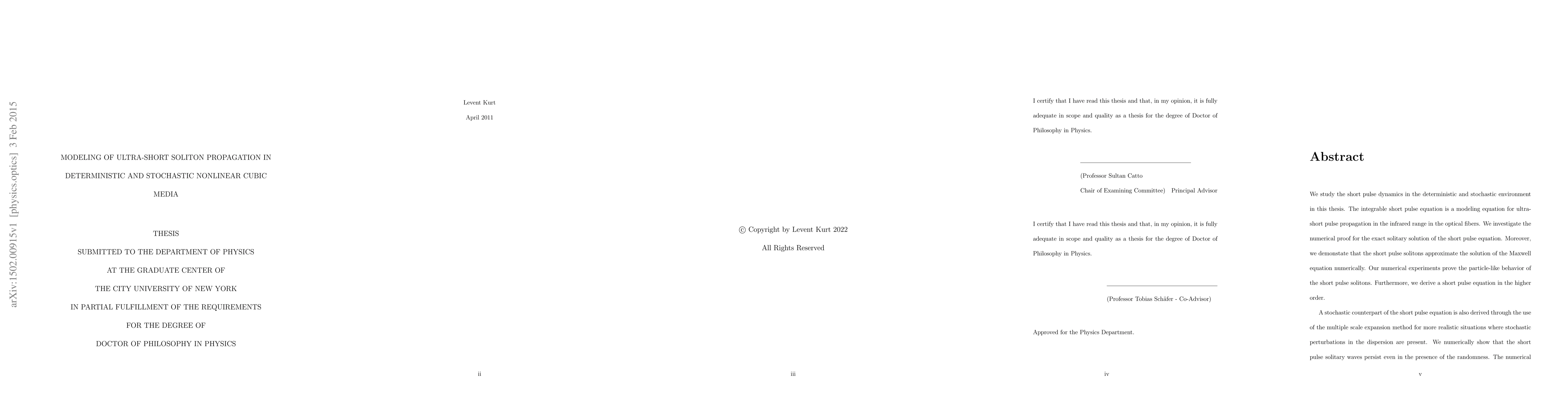 We study the short pulse dynamics in the deterministic and stochastic environment in this thesis. The integrable short pulse equation is a modelling equation for ultra-short pulse propagation in the infrared range in the optical fibers. We investigate the numerical proof for the exact solitary solution of the short pulse equation. Moreover, we demonstrate that the short pulse solitons approximate the solution of the Maxwell equation numerically. Our numerical experiments prove the particle-like behaviour of the short pulse solitons. Furthermore, we derive a short pulse equation in the higher order. A stochastic counterpart of the short pulse equation is also derived through the use of the multiple scale expansion method for more realistic situations where stochastic perturbations in the dispersion are present. We numerically show that the short pulse solitary waves persist even in the presence of the randomness. The numerical schemes developed demonstrate that the statistics of the coarse-graining noise of the short pulse equation over the slow scale, and the microscopic noise of the nonlinear wave equation over the fast scale, agree to fairly good accuracy.