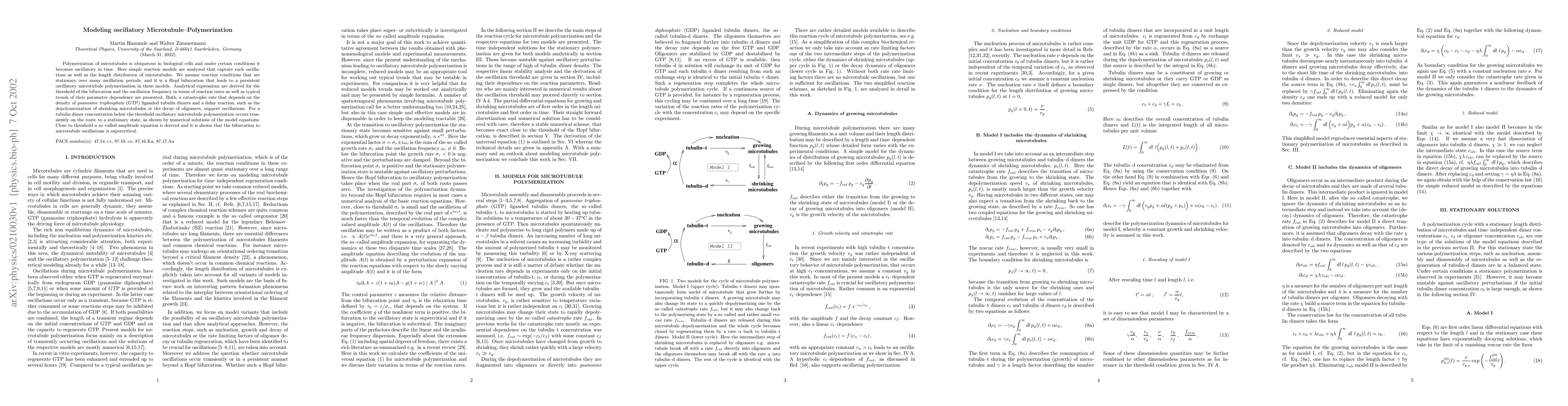Researchers model microtubule polymerization using simple reaction models, finding that oscillatory behavior occurs through a Hopf bifurcation under certain conditions. This leads to transient oscillations at low concentrations and stable oscillations above a threshold.