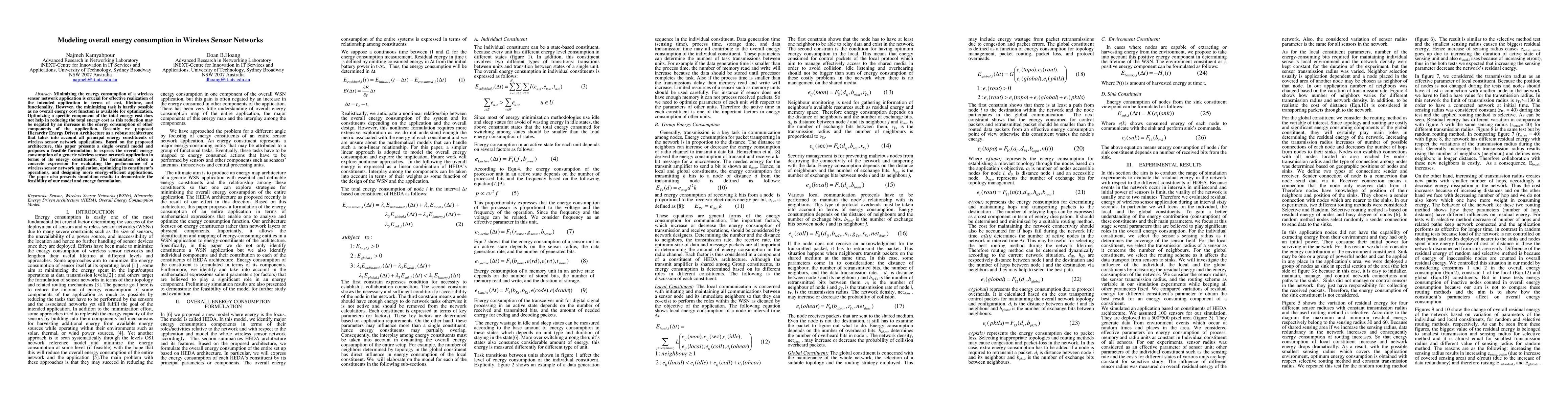 This paper proposes a comprehensive model for overall energy consumption in wireless sensor networks, addressing the lack of an integrated energy cost function. It introduces a Hierarchy Energy Driven Architecture to optimize energy efficiency across all components, offering a feasible formulation for evaluating and improving network applications.