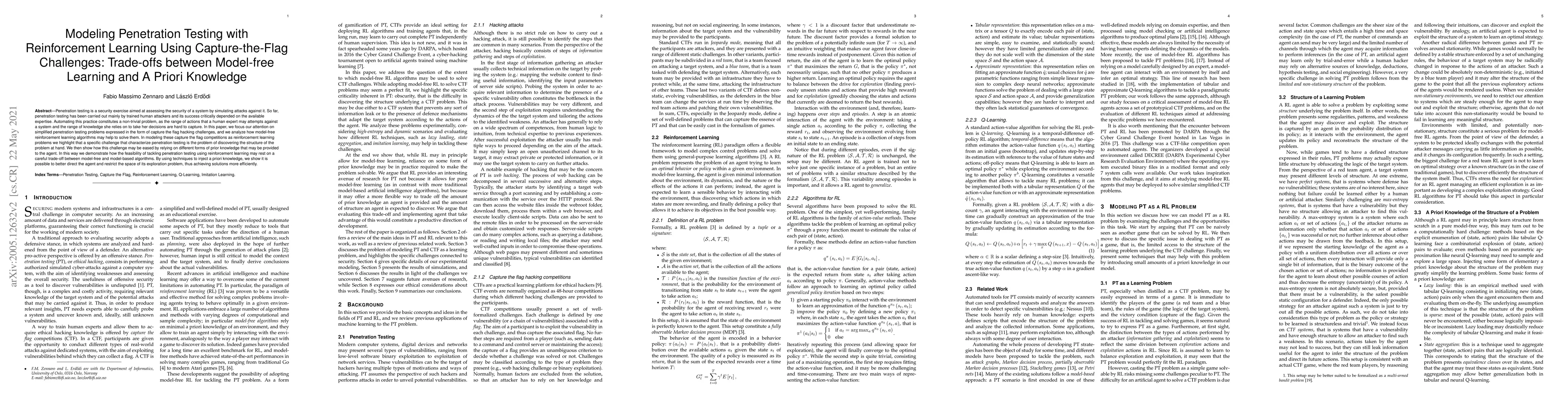 This paper explores the use of reinforcement learning to automate penetration testing through capture-the-flag challenges, highlighting the trade-off between model-free learning and incorporating prior knowledge to improve efficiency and problem discovery. The study demonstrates that leveraging a priori knowledge can guide the agent more effectively, achieving solutions more efficiently than purely model-free methods.