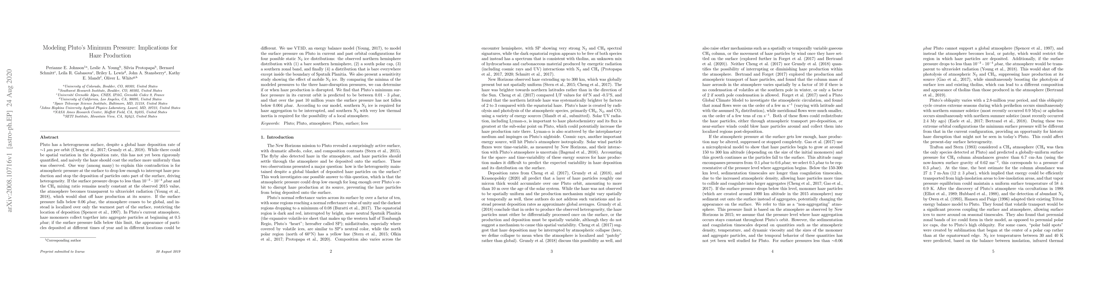 This research uses the VT3D energy balance model to simulate Pluto's surface pressure under various N2 ice distributions, finding that pressure drops below certain thresholds could halt haze production, explaining observed surface heterogeneity. It also explores the impact of mobile N2 ice.
