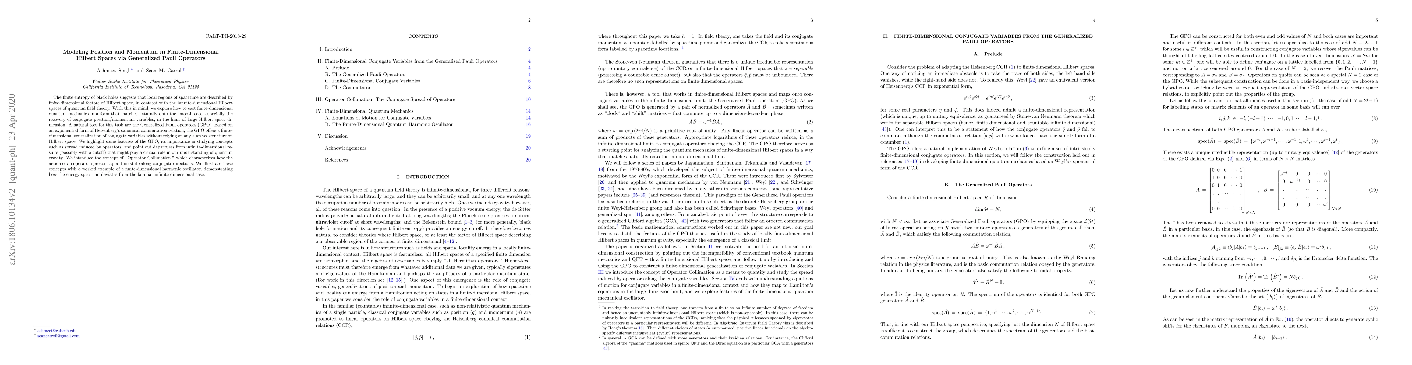 The finite entropy of black holes suggests that local regions of spacetime are described by finite-dimensional factors of Hilbert space, in contrast with the infinite-dimensional Hilbert spaces of quantum field theory. With this in mind, we explore how to cast finite-dimensional quantum mechanics in a form that matches naturally onto the smooth case, especially the recovery of conjugate position/momentum variables, in the limit of large Hilbert-space dimension. A natural tool for this task are the Generalized Pauli operators (GPO). Based on an exponential form of Heisenberg's canonical commutation relation, the GPO offers a finite-dimensional generalization of conjugate variables without relying on any a priori structure on Hilbert space. We highlight some features of the GPO, its importance in studying concepts such as spread induced by operators, and point out departures from infinite-dimensional results (possibly with a cutoff) that might play a crucial role in our understanding of quantum gravity. We introduce the concept of "Operator Collimation," which characterizes how the action of an operator spreads a quantum state along conjugate directions. We illustrate these concepts with a worked example of a finite-dimensional harmonic oscillator, demonstrating how the energy spectrum deviates from the familiar infinite-dimensional case.