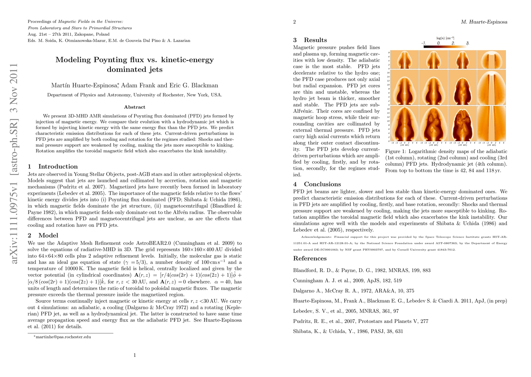 Researchers simulate magnetic energy jets and compare their behavior to kinetic-energy jets, finding that cooling and rotation amplify instabilities in the magnetic energy jets, making them more susceptible to kinking.