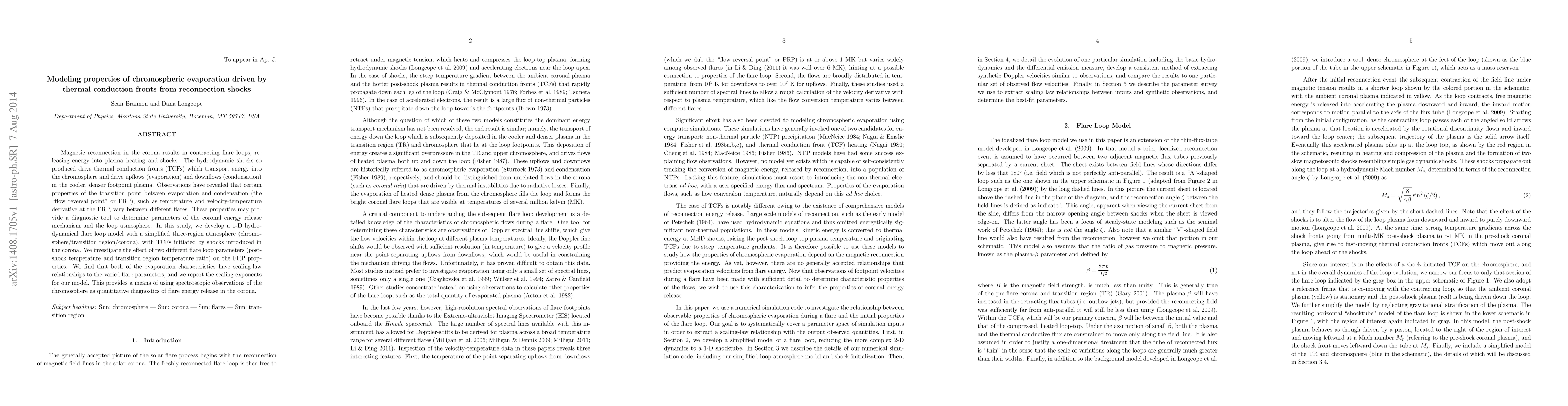 This study models chromospheric evaporation driven by thermal conduction fronts from reconnection shocks in solar flares, finding scaling-law relationships between evaporation characteristics and flare parameters.
