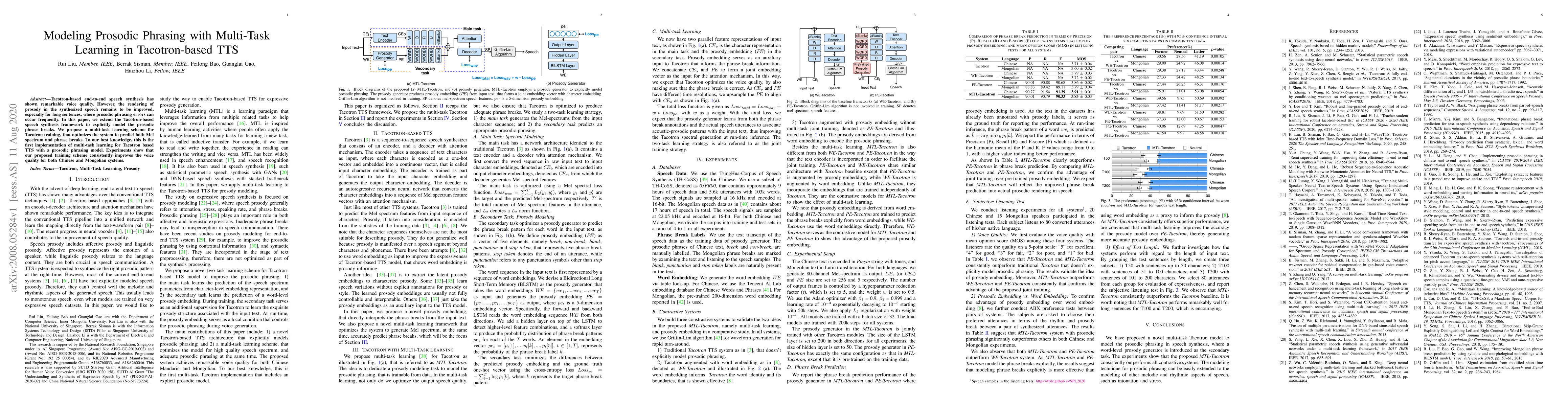 This paper proposes a multi-task learning approach to enhance prosodic phrasing in Tacotron-based text-to-speech systems, optimizing for both Mel spectrum and phrase breaks. The results demonstrate improved voice quality in synthesized speech for both Chinese and Mongolian languages.