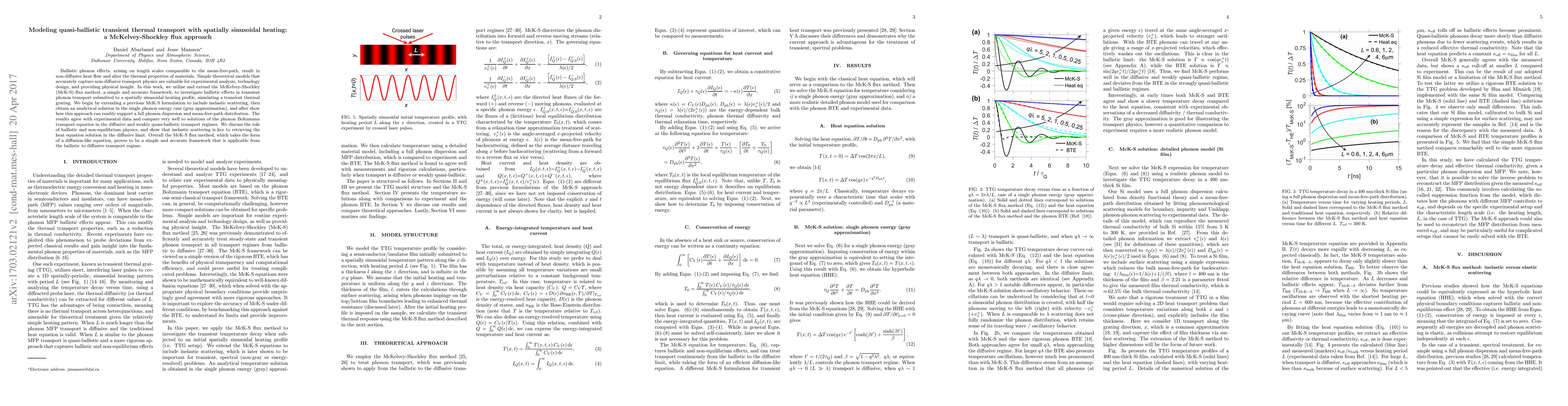 Ballistic phonon effects, arising on length scales comparable to the mean-free-path, result in non-diffusive heat flow and alter the thermal properties of materials. Simple theoretical models that accurately capture non-diffusive transport physics are valuable for experimental analysis, technology design, and providing physical insight. In this work, we utilize and extend the McKelvey-Shockley (McK-S) flux method, a simple and accurate framework, to investigate ballistic effects in transient phonon transport submitted to a spatially sinusoidal heating profile, simulating a transient thermal grating. We begin by extending a previous McK-S formulation to include inelastic scattering, then obtain an analytical solution in the single phonon energy case (gray approximation), and after show how this approach can readily support a full phonon dispersion and mean-free-path distribution. The results agree with experimental data and compare very well to solutions of the phonon Boltzmann transport equation in the diffusive and weakly quasi-ballistic transport regimes. We discuss the role of ballistic and non-equilibrium physics, and show that inelastic scattering is key to retrieving the heat equation solution in the diffusive limit. Overall the McK-S flux method, which takes the form of a diffusion-like equation, proves to be a simple and accurate framework that is applicable from the ballistic to diffusive transport regime.