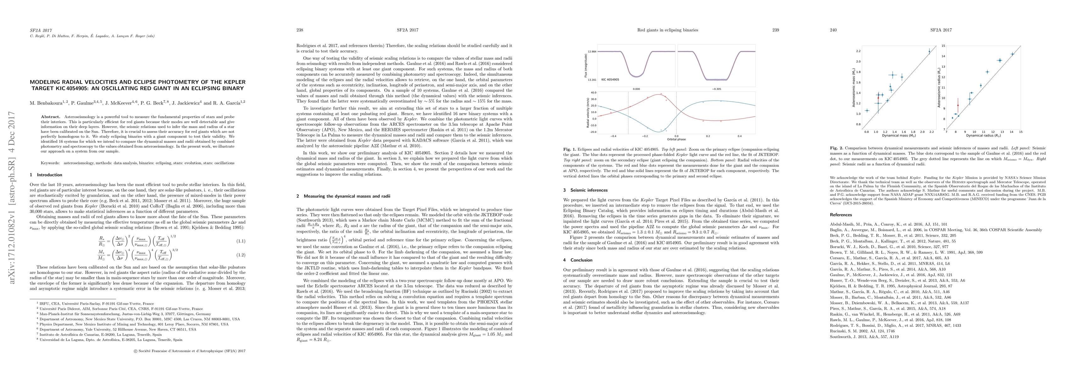 Asteroseismology is a powerful tool to measure the fundamental properties of stars and probe their interiors. This is particularly efficient for red giants because their modes are well detectable and give information on their deep layers. However, the seismic relations used to infer the mass and radius of a star have been calibrated on the Sun. Therefore, it is crucial to assess their accuracy for red giants which are not perfectly homologous to it. We study eclipsing binaries with a giant component to test their validity. We identified 16 systems for which we intend to compare the dynamical masses and radii obtained by combined photometry and spectroscopy to the values obtained from asteroseismology. In the present work, we illustrate our approach on a system from our sample.