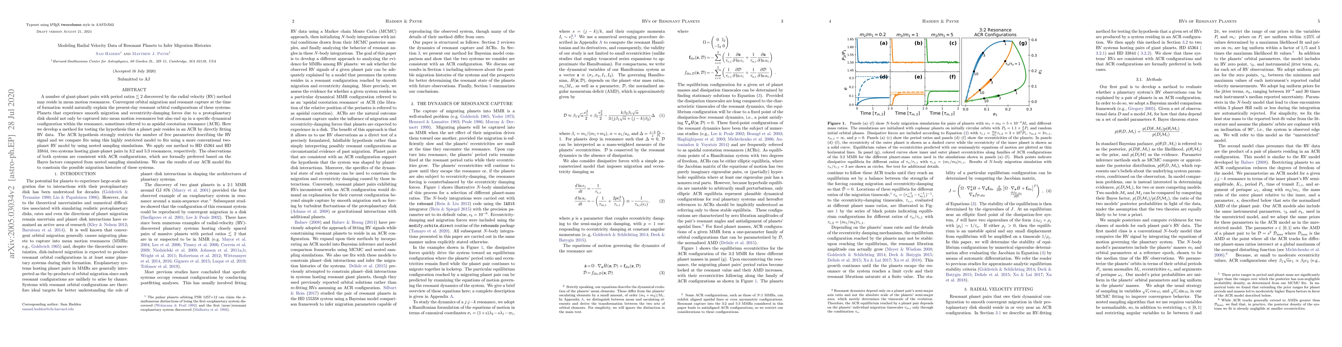 A number of giant planet pairs discovered by the radial velocity method with period ratios $\lesssim 2$ may reside in mean motion resonances. Convergent orbital migration and resonant capture at the time of formation would naturally explain the present-day resonant orbital configurations of these systems. Planets that experience smooth migration and eccentricity damping forces due to a proto-planetary disk should not only capture into mean motion resonances but also end up in a specific dynamical configuration within the resonance, sometimes referred to as apsidal corotation resonance (ACR). Here we develop a method for testing the hypothesis that a planet pair resides in an ACR by directly fitting radial velocity data. The ACR hypothesis strongly restricts the number of free parameters describing the radial velocity signal and we compare fits using this highly restricted model to fits using a more conventional two-planet RV model by using nested sampling simulations. We apply our method to HD 45364 and HD 33844, two systems hosting giant planet pairs in 3:2 and 5:3 resonances, respectively. We demonstrate that the observations of both systems support an ACR configuration and we use the results of our ACR model fits to constrain possible migration histories of these systems.
