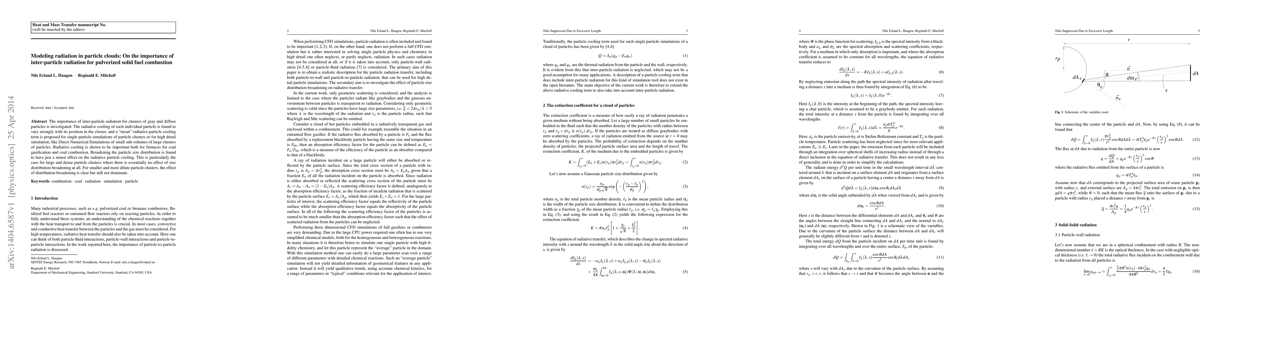 The importance of inter-particle radiation for clusters of gray and diffuse particles is investigated. The radiative cooling of each individual particle is found to vary strongly with its position in the cluster, and a mean radiative particle cooling term is proposed for single particle simulations of particle clusters or for high detail simulation, like Direct Numerical Simulations of small sub-volumes of large clusters of particles. Radiative cooling is shown to be important both for furnaces for coal gasification and coal combustion. Broadening the particle size distribution is found to have just a minor effect on the radiative particle cooling. This is particularly the case for large and dense particle clusters where there is essentially no effect of size distribution broadening at all. For smaller and more dilute particle clusters, the effect of distribution broadening is clear but still not dominant.