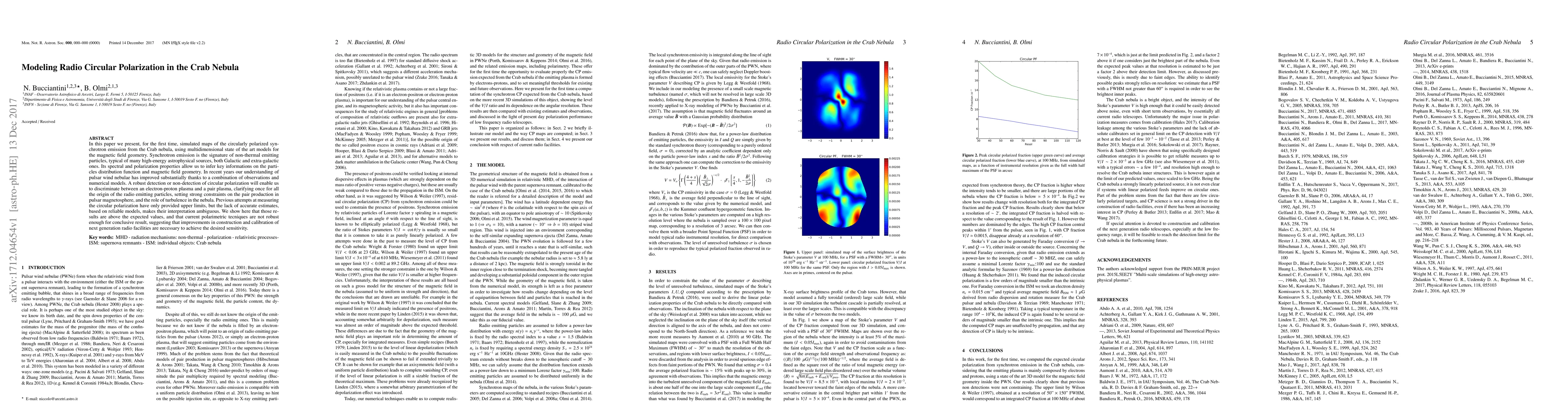 Researchers created simulated maps of circularly polarized synchrotron emission in the Crab Nebula using advanced models for magnetic field geometry. This study aims to improve understanding of high-energy astrophysical sources by distinguishing between electron-proton and pair plasmas.