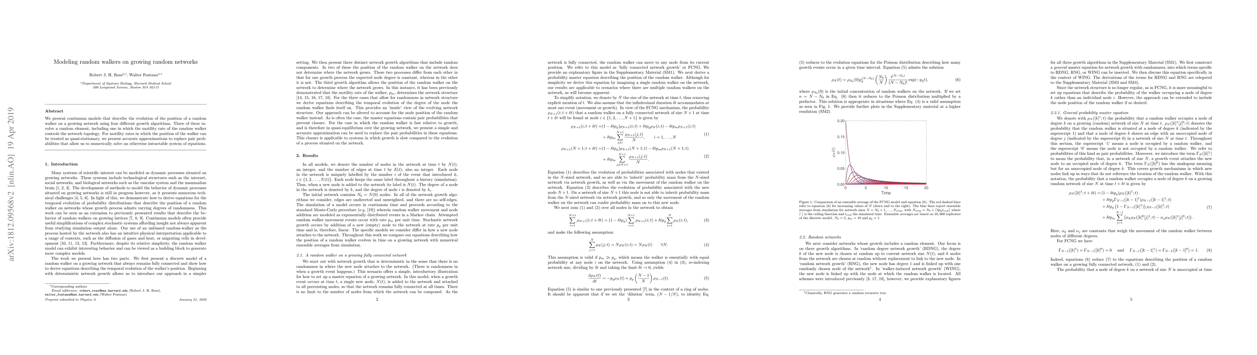 We present continuum models that describe the evolution of the position of a random walker on a growing network using four different growth algorithms. Three of these involve a random element, including one in which the motility rate of the random walker controls the network topology. For motility rates in which the position of the walker can be treated as quasi-stationary, we present accurate approximations to replace pair probabilities that allow us to numerically solve an otherwise intractable system of equations.