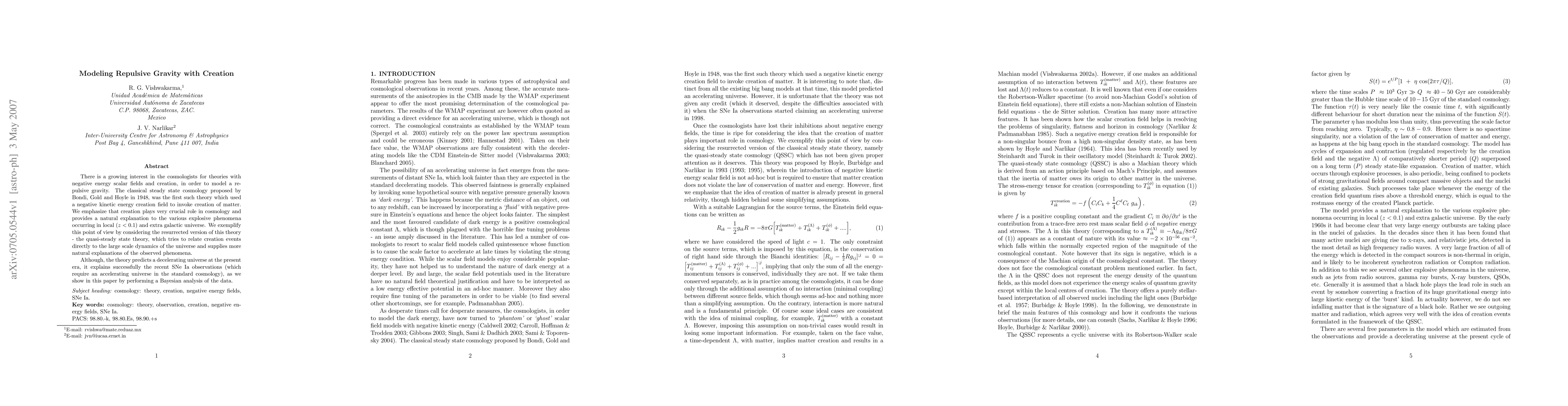 There is a growing interest in the cosmologists for theories with negative energy scalar fields and creation, in order to model a repulsive gravity. The classical steady state cosmology proposed by Bondi, Gold and Hoyle in 1948, was the first such theory which used a negative kinetic energy creation field to invoke creation of matter. We emphasize that creation plays very crucial role in cosmology and provides a natural explanation to the various explosive phenomena occurring in local (z<0.1) and extra galactic universe. We exemplify this point of view by considering the resurrected version of this theory - the quasi-steady state theory, which tries to relate creation events directly to the large scale dynamics of the universe and supplies more natural explanations of the observed phenomena. Although the theory predicts a decelerating universe at the present era, it explains successfully the recent SNe Ia observations (which require an accelerating universe in the standard cosmology), as we show in this paper by performing a Bayesian analysis of the data.