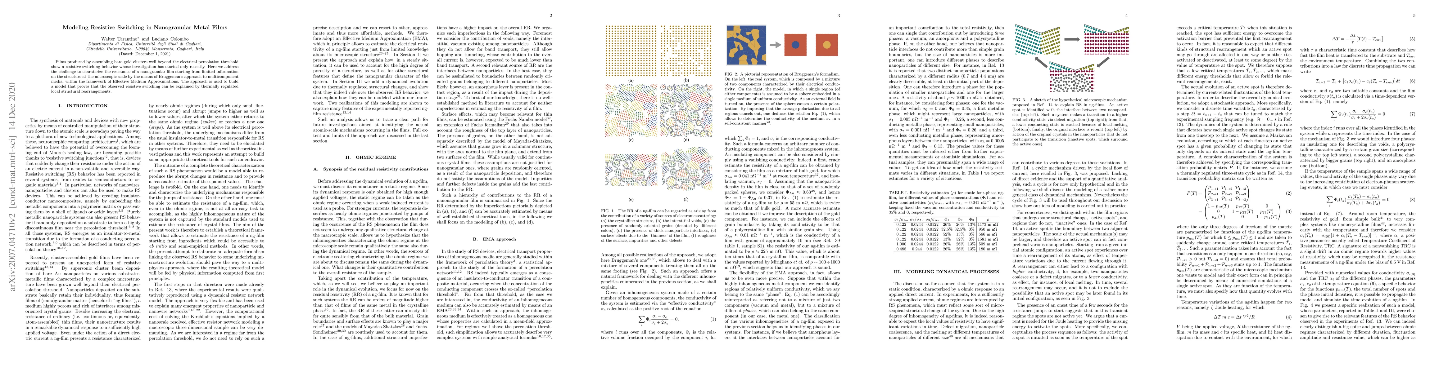 Researchers developed a model to explain resistive switching in nanogranular metal films, showing that it occurs through thermally regulated local structural rearrangements. This breakthrough uses Effective Medium Approximations to characterize resistance based on limited microscopic structure information.
