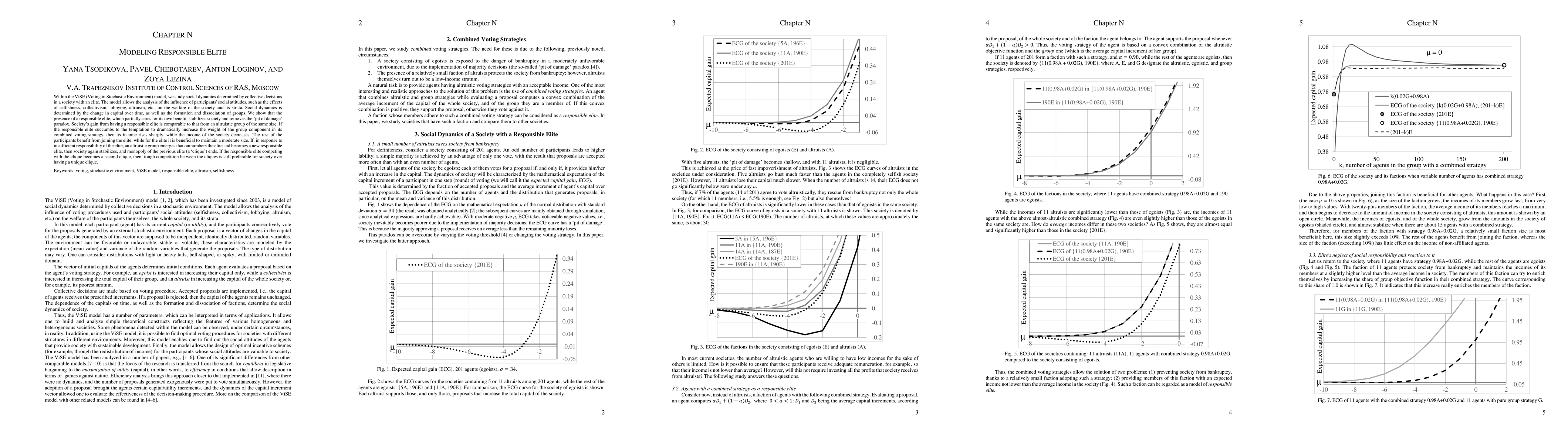 The ViSE model analyzes social dynamics in a society with an elite, showing that a responsible elite, balancing self-interest with collective welfare, stabilizes society and mitigates the "pit of damage" paradox. An altruistic group emerging to replace an insufficiently responsible elite can also stabilize society, with competition between elites being preferable to a single dominant clique.